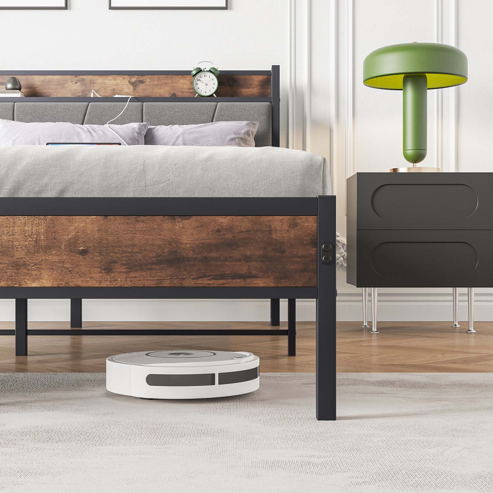 Queen Bed Frame, Storage Headboard, Charging, No Box Spring