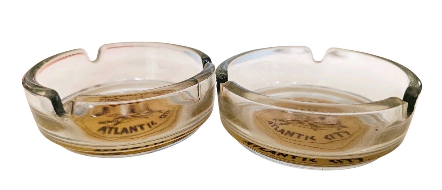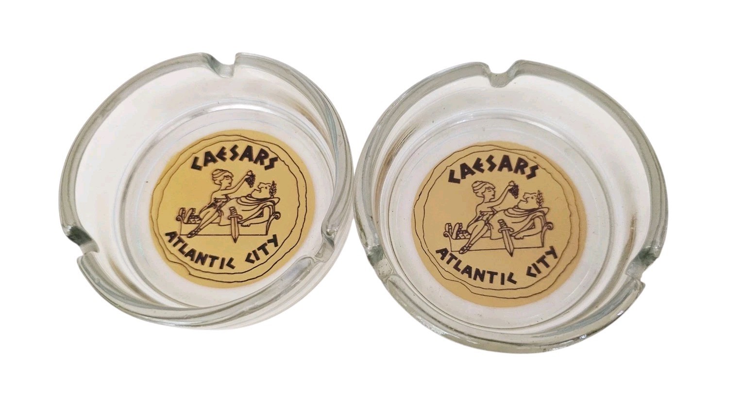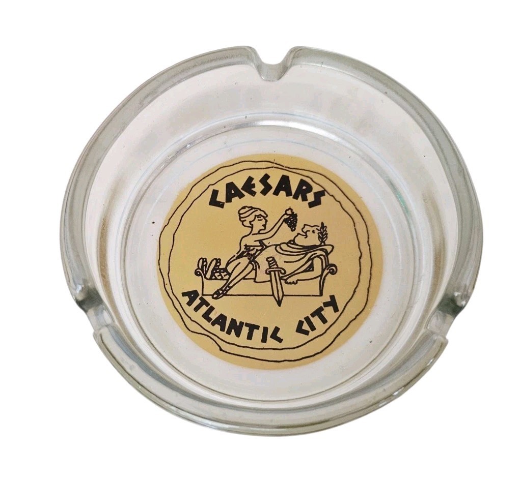2 Vintage CAESARS PALACE Atlantic City Hotel & Casino Advertising Glass Ashtray