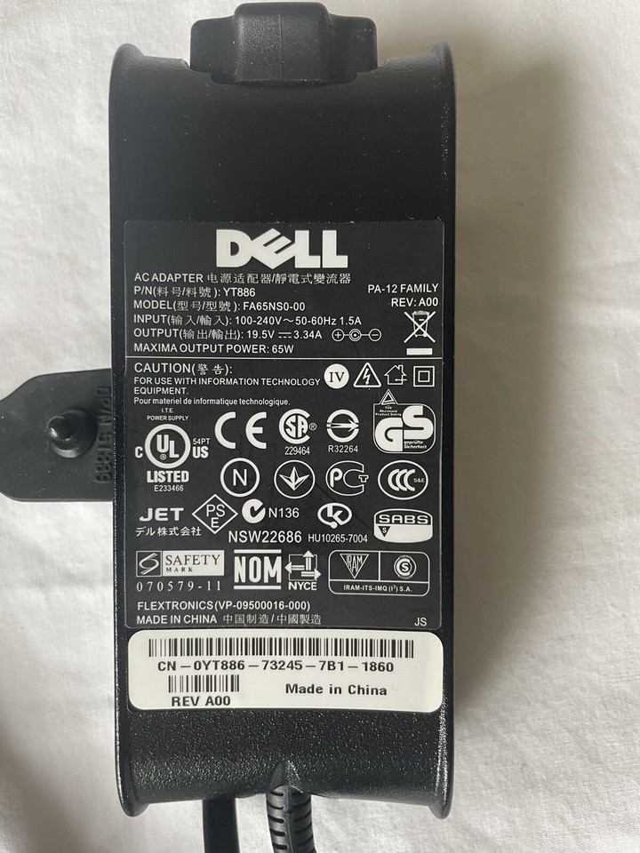 Dell 65W-AC Adapter Model FA65NS0-00 REV A00 and 50 similar items