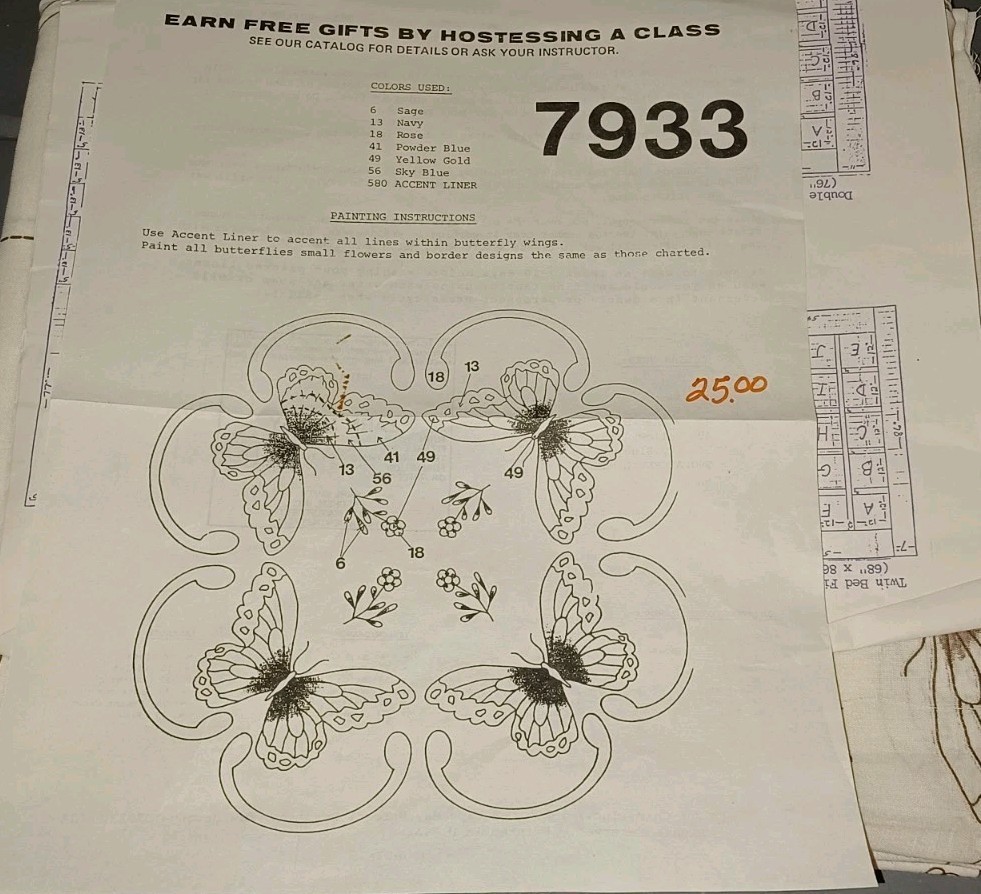 Vtg 80s Tri-Chem Paint 21 Quilt Blocks BUTTERFLY Quartet Stamped Embroidery Set Kit NOS