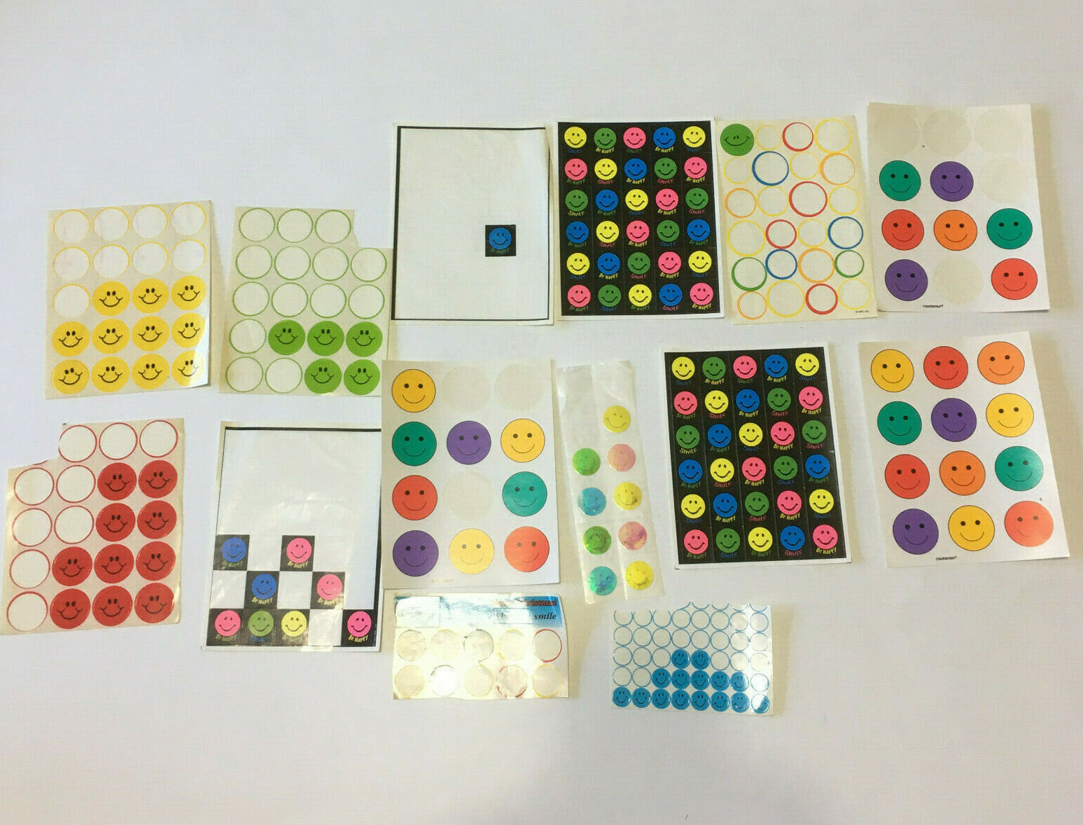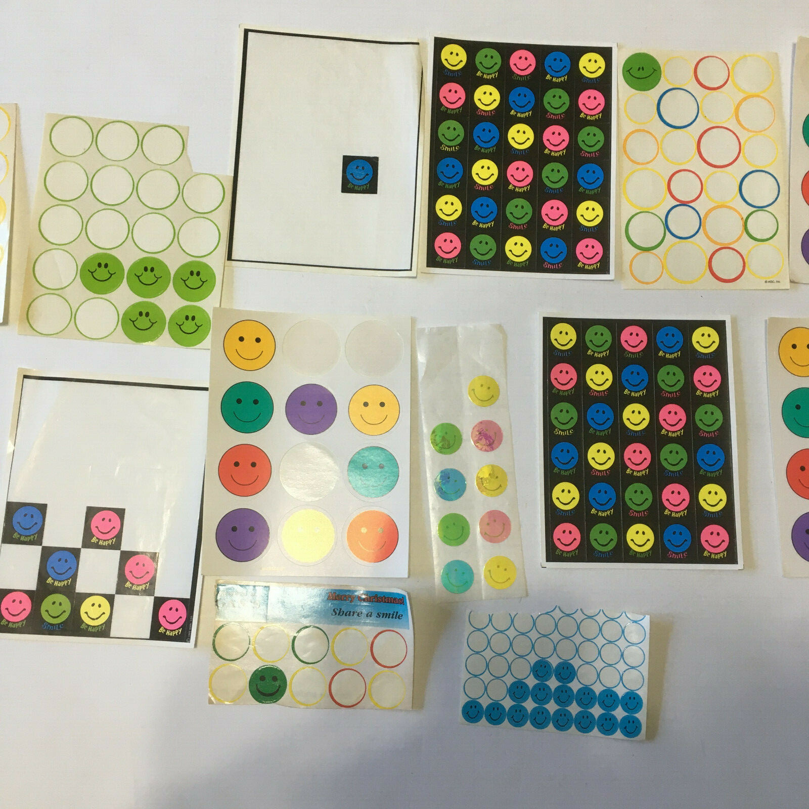Vintage smiley face sticker sheets lot bright color round happy face stickers