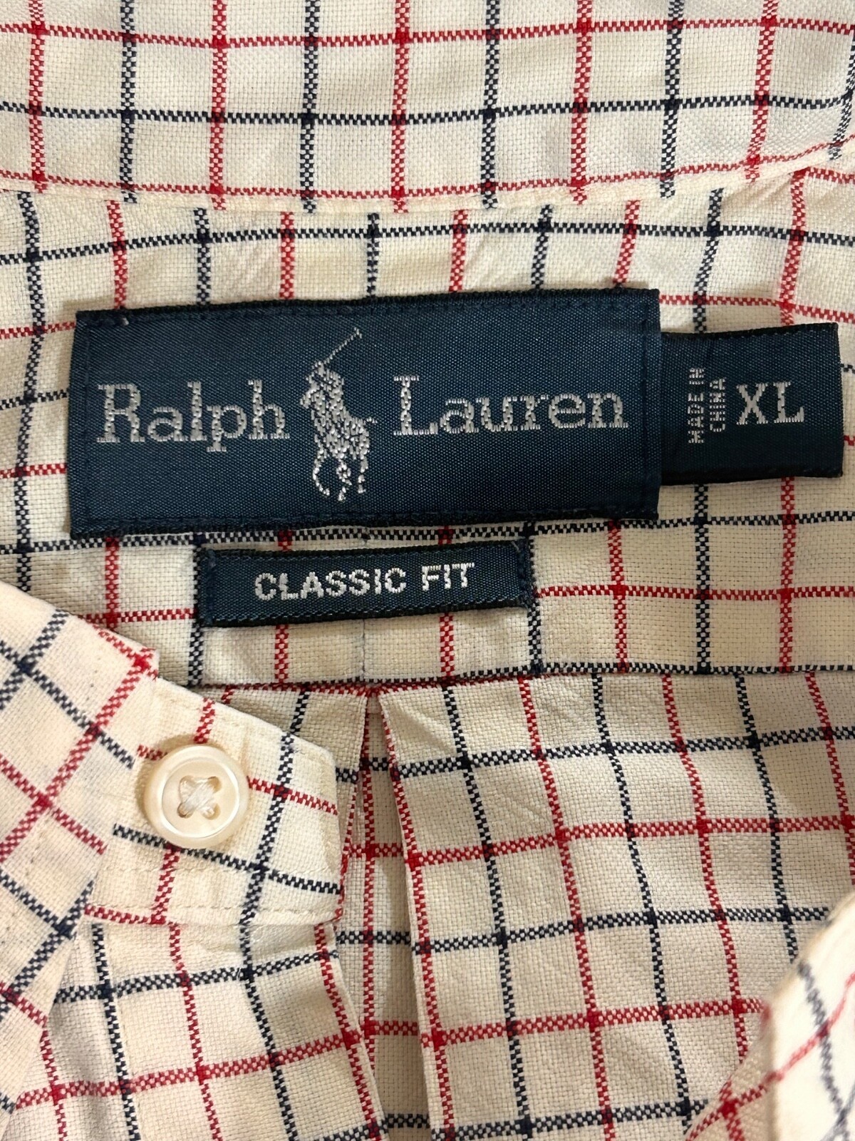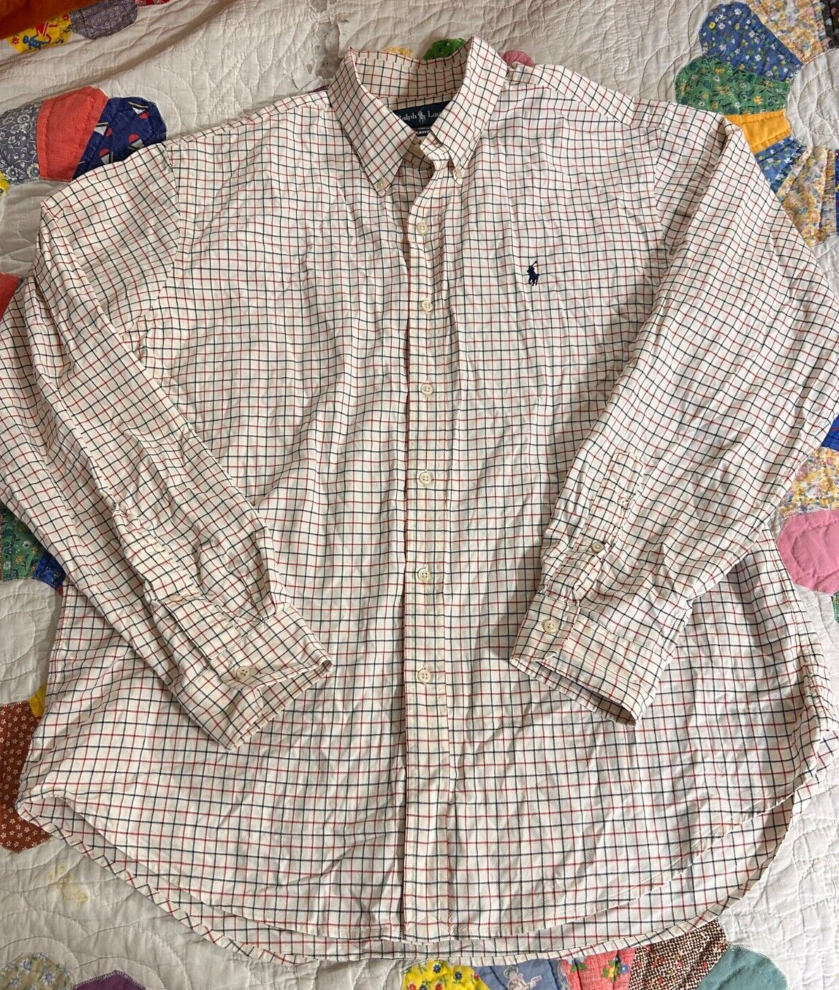RALPH LAUREN CLASSIC FIT Large Men's L/S Button Down Shirt Window Pane Plaid XL