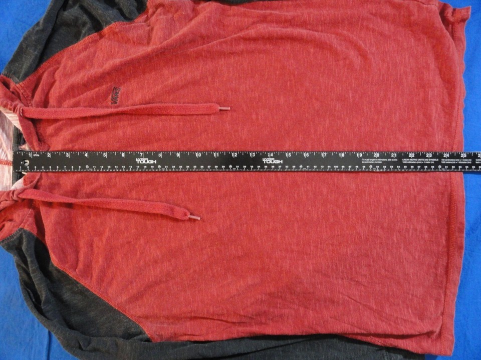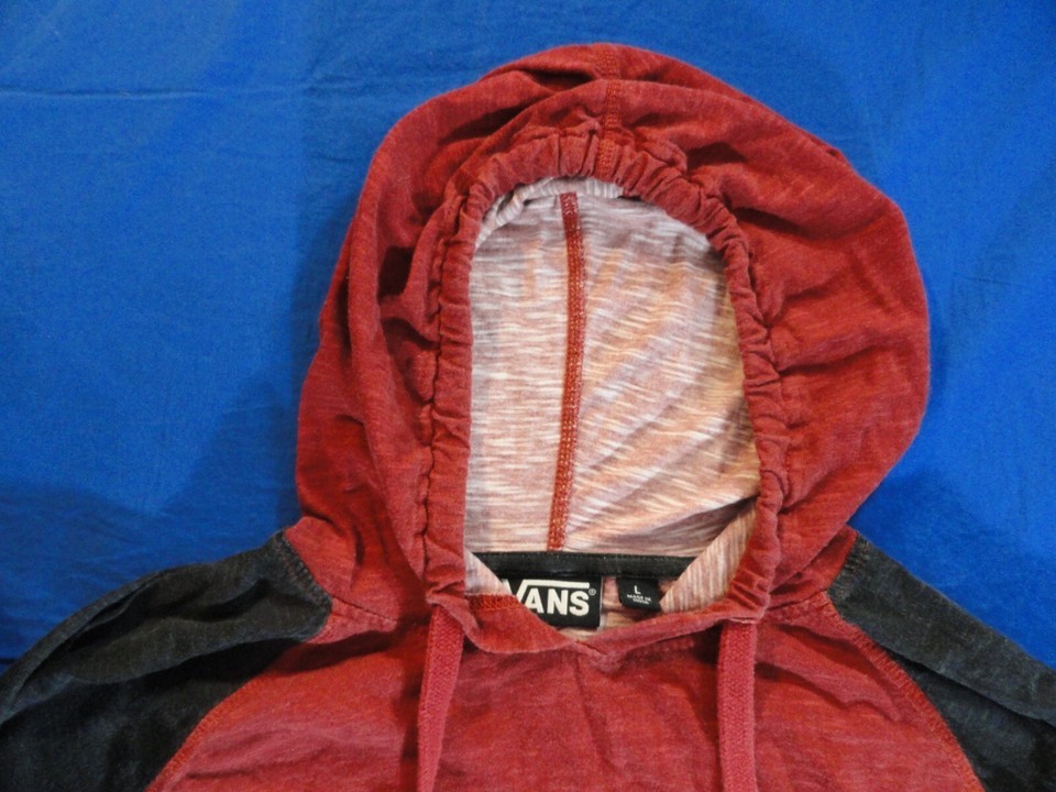 VANS RED AND BLACK LONG SLEEVE WITH HOOD PULLOVER LIGHTWEIGHT SHIRT L