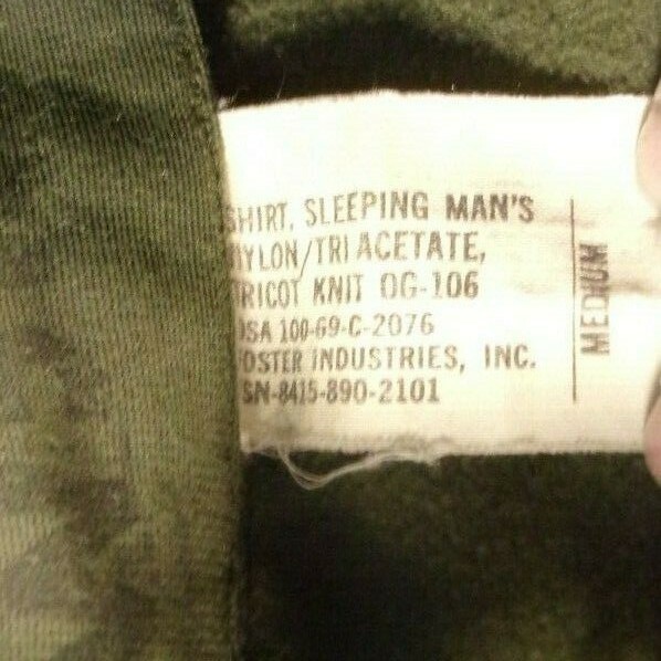 USAF ARMY USN HEAT RETENTIVE MOISTURE RESISTANT GREEN SLEEP SHIRT MEDIUM SI 45