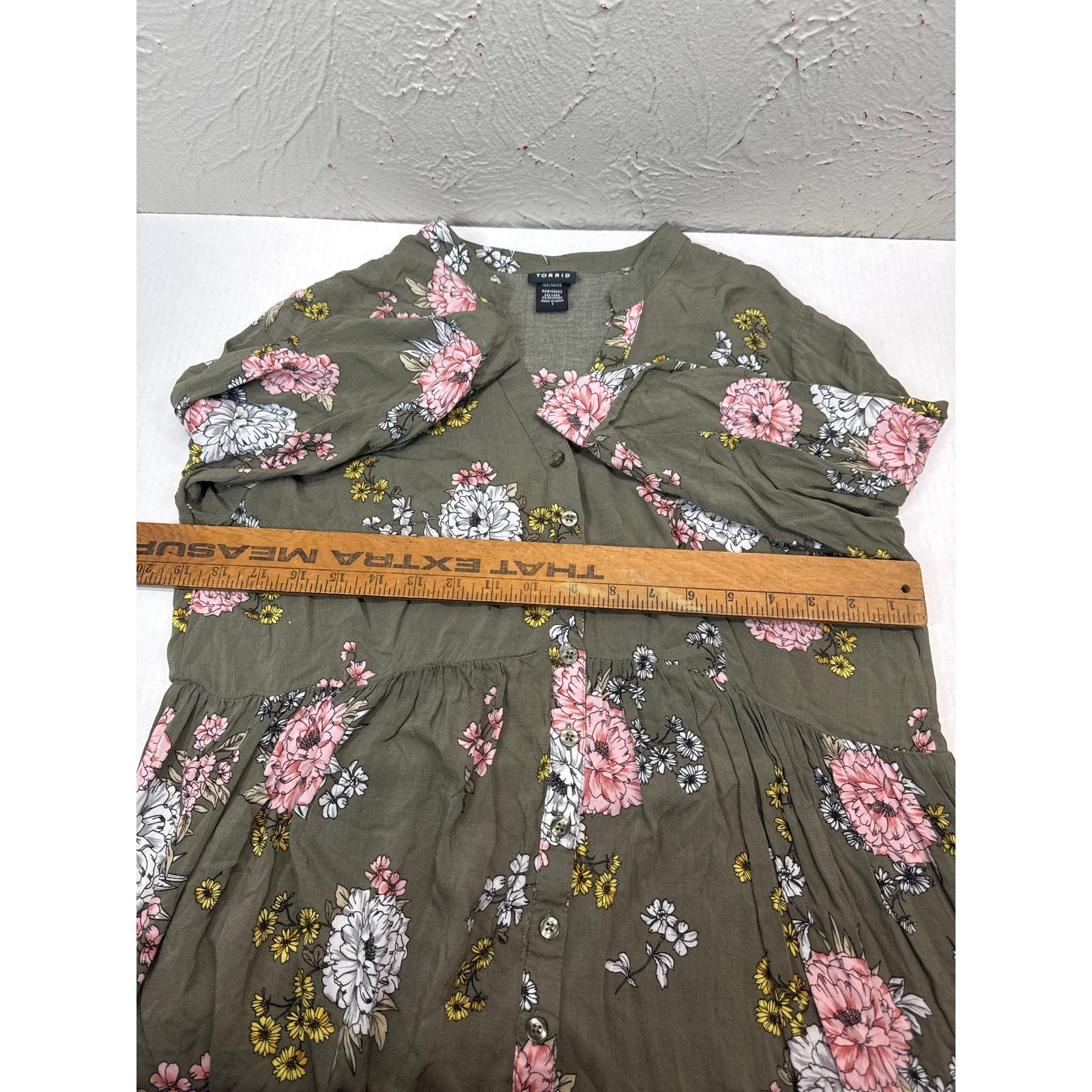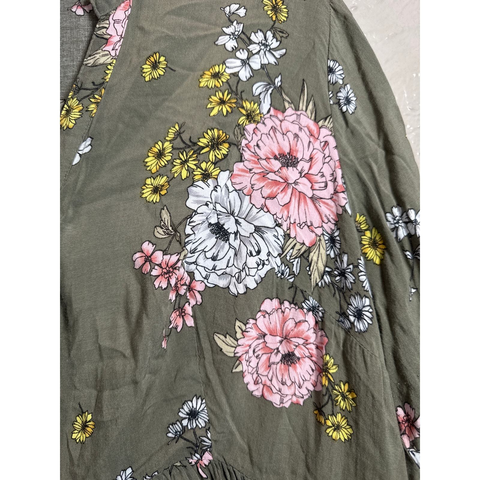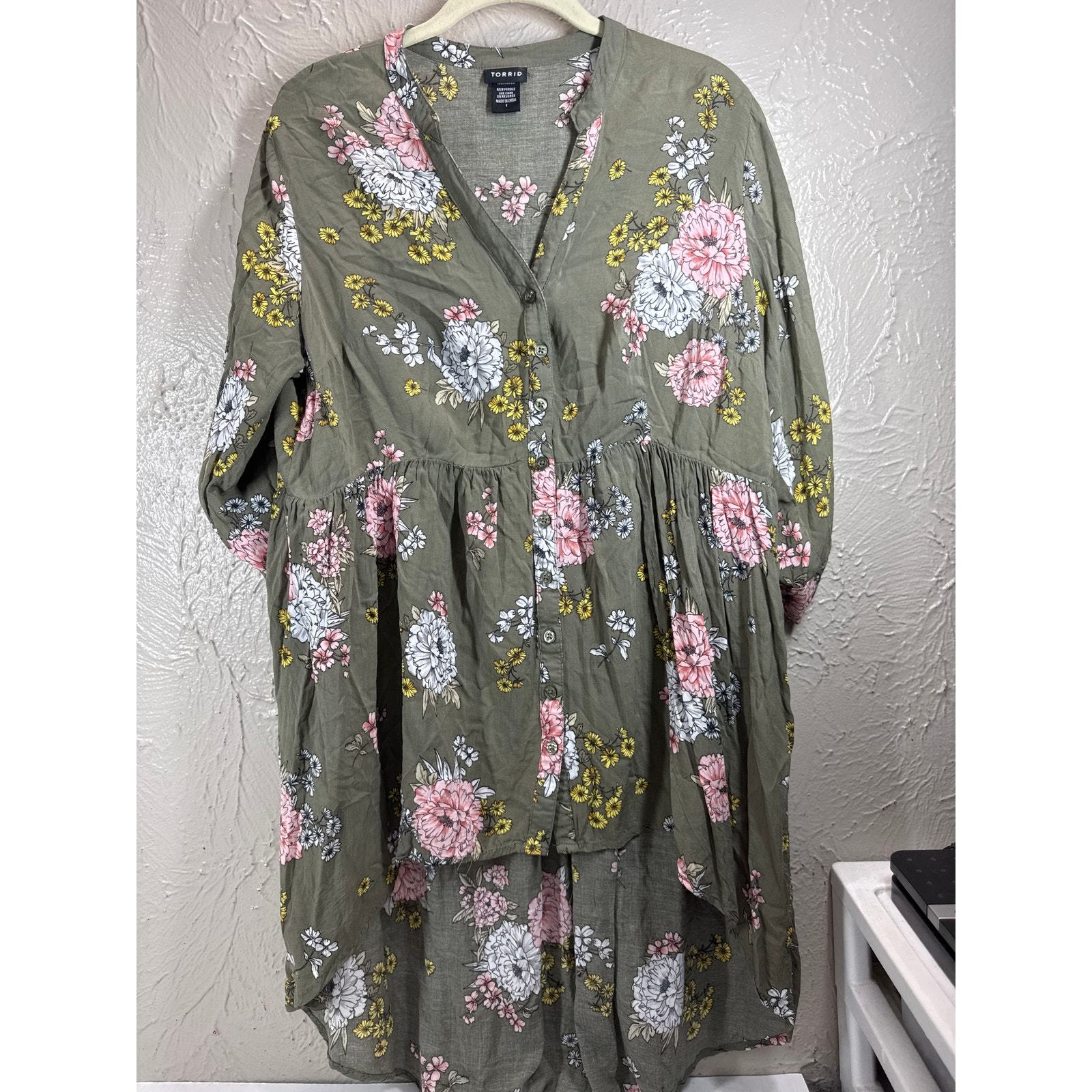 Torrid Green Floral Hi-Lo Babydoll Womens Tunic Top Tab Sleeve Plus Size 1
