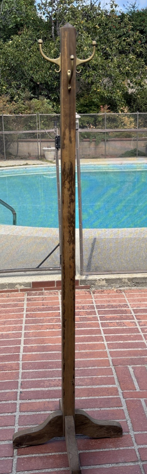vintage Mission Arts & Crafts Style Wood Coat Rack Tree stand