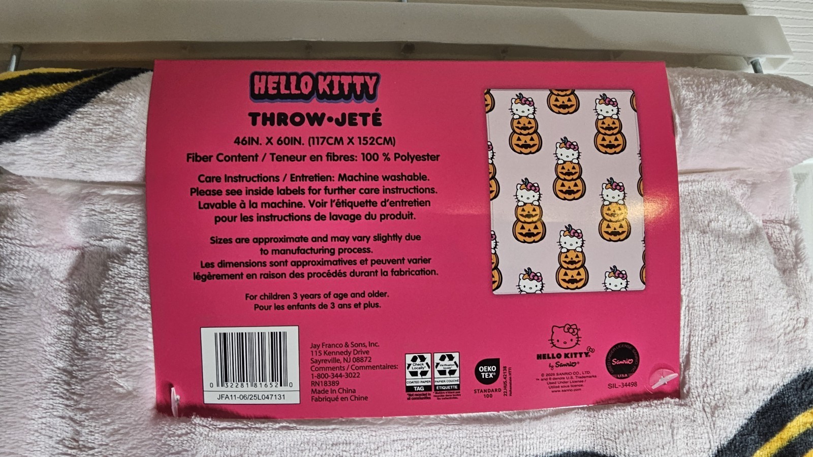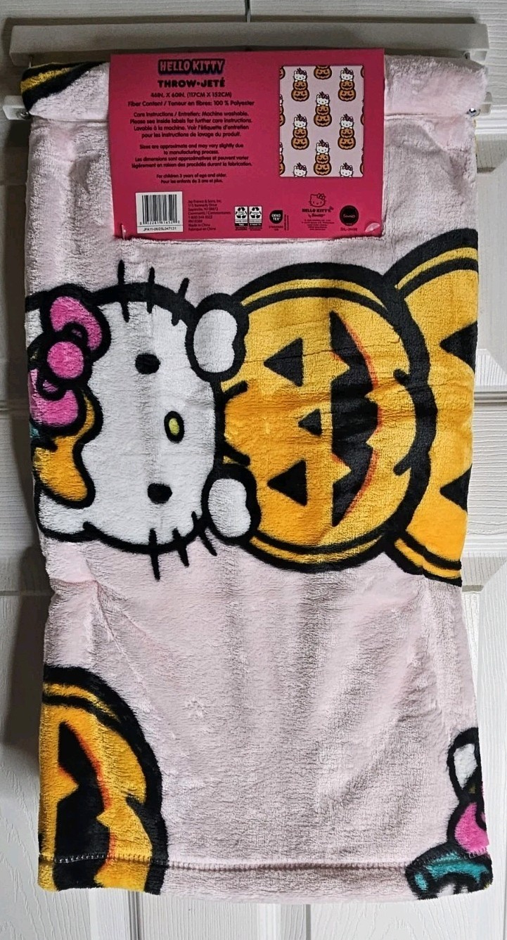 Hello Kitty Pink Plush Throw Blanket Soft Halloween Pumpkins 46x60 New