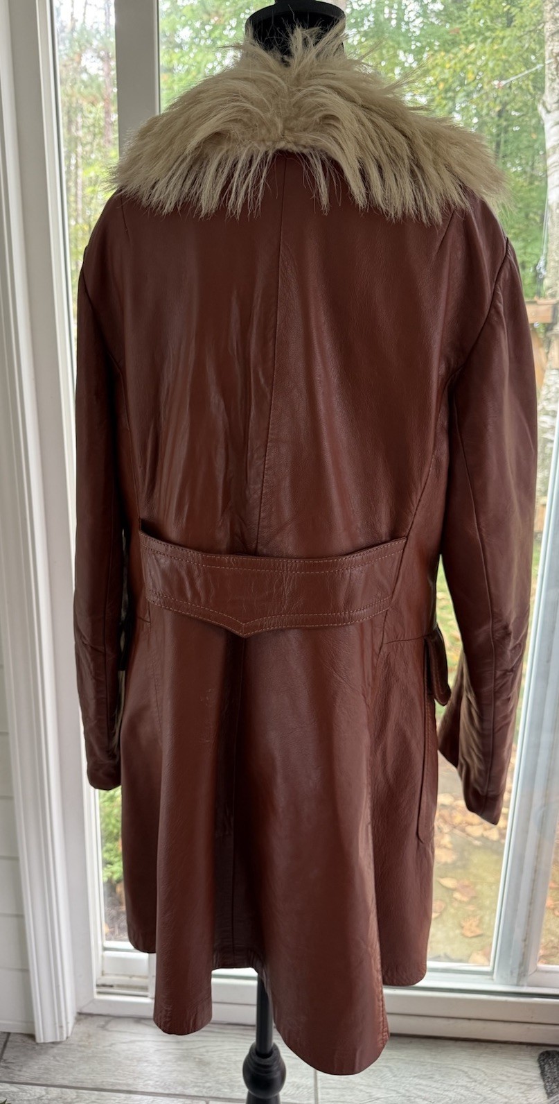 Lantry Leathers Red/Brown Leather Coat With Fur ~ Penny Lane Boho Excellent Cond