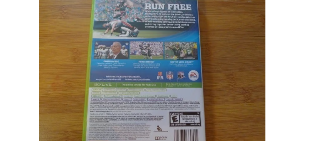 RUN FREECelebrating 25 years of innovation, Madden NFL 25 unlocks the power, precision, and creativity of the NFL ball-carrier. Whether you're a slashing running back, dual-threat QB, or ball- hawking safety, unleash 30 new moves and string together devastating combos with the all-new precision modifier. Released 2013.