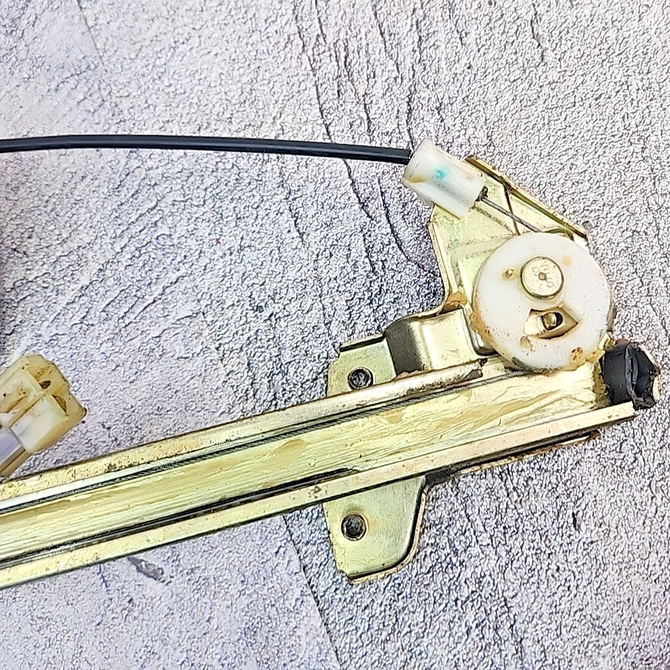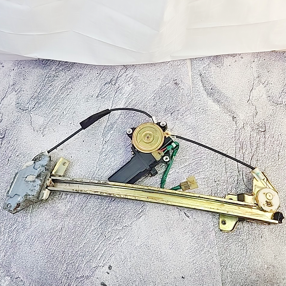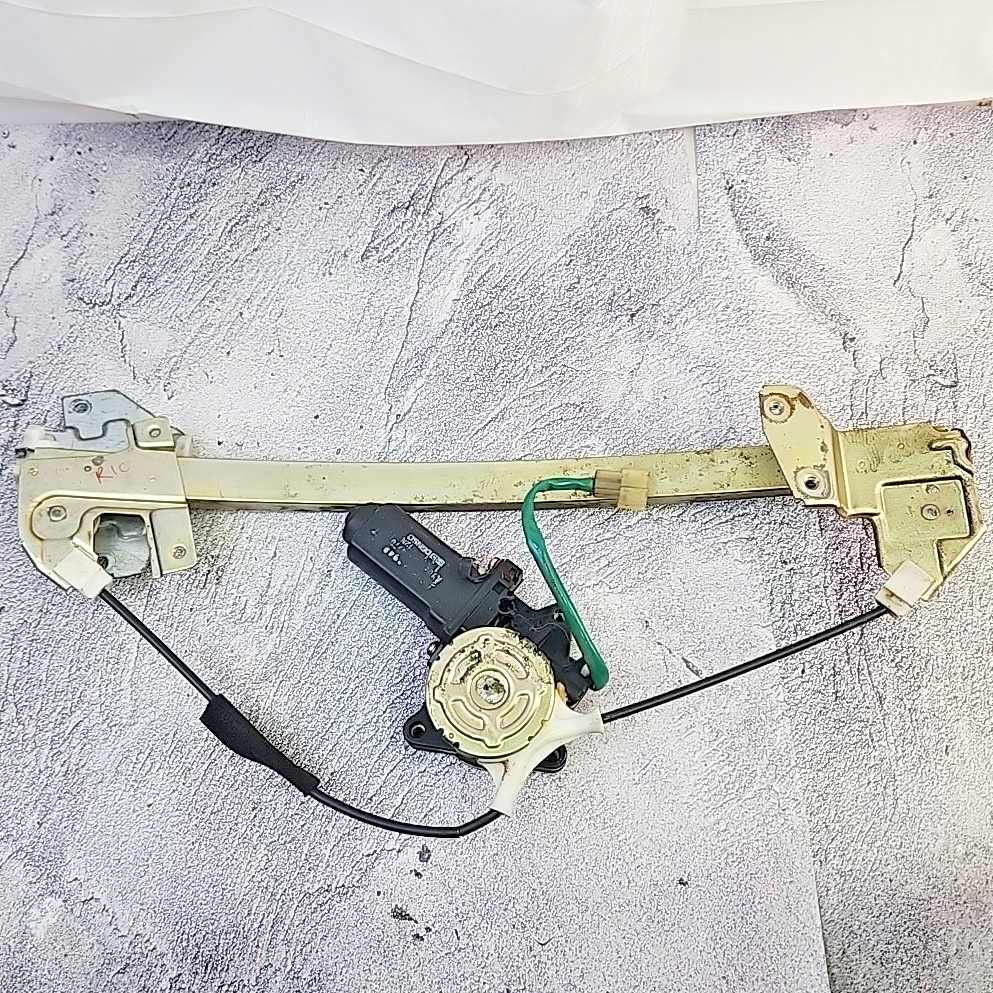 The product is a Mitsubishi MB517948 1990-1994 1G Eclipse Laser Talon DSM RH Power Window Regulator with Motor. This regulator and motor assembly is designed for electric operation, made of plastic and galvanized steel, and manufactured in Japan. It is specifically designed for the front right side of the vehicle, providing an original equipment manufacturer (OEM) part number for compatibility. This non-vintage, non-performance enhancing part is a genuine component for the specified car and truck models.