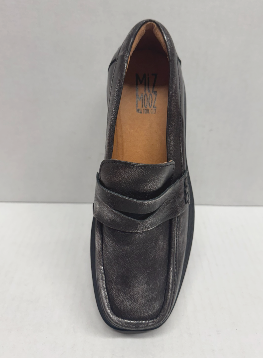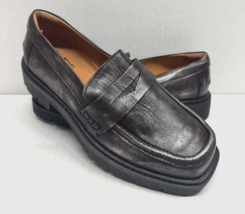 MIZ MOOZ LEATHER SLIP ON PLATFORM LOAFERS PEWTER 37EU / 7US NEW # X-12