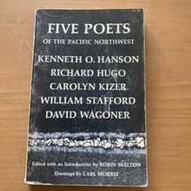 Some pages have been dog eared and have small notations. The product is a softcover book titled "Five Poets Of The Pacific Northwest Read" edited by Robin Skelton. It features poetry from five poets of the Pacific Northwest region in North America. Published by the University of Washington Press, this original edition is in English and is a valuable collectible for poetry enthusiasts.