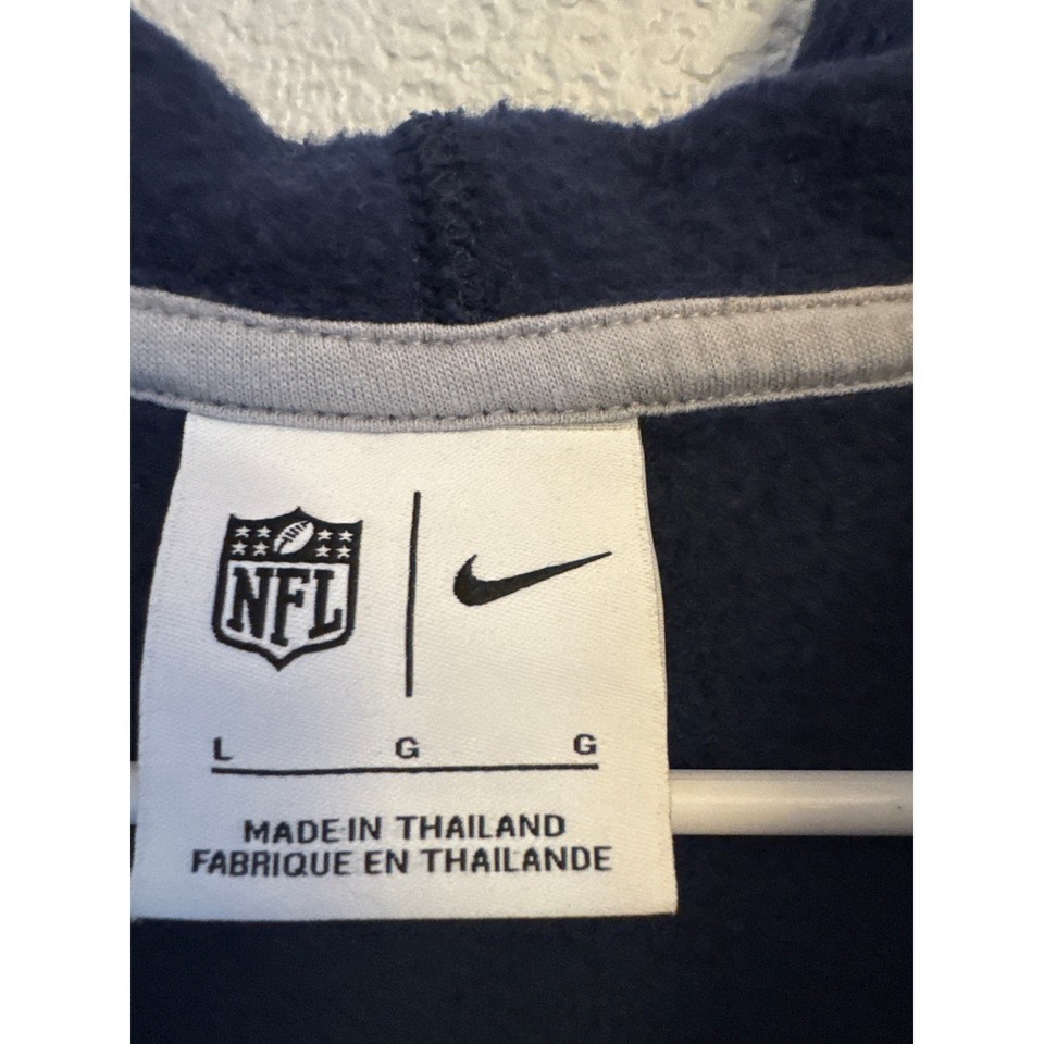Official Dallas Cowboys NFL sweatshirt by Nike, made in Thailand. Features detailed sleeves with authentic Nike design, long 25.5? sleeves, 24.5? pit to pit, and 26? length. Crafted for comfort with a relaxed fit, perfect for game day or casual wear. Classic pullover style showcasing team pride and Nike quality.