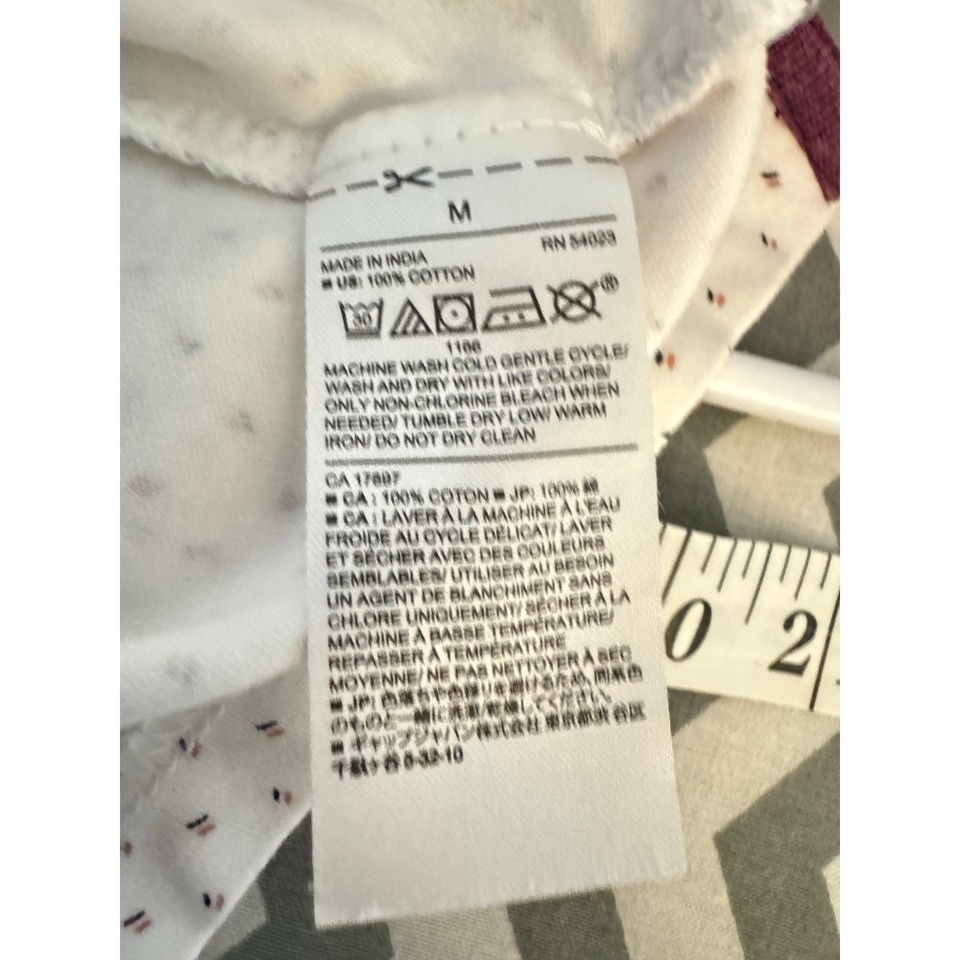 Classic Banana Republic polo shirt in men?s size Medium. White base with a subtle micro-pattern of thin black and red lines for a modern, polished look. Short-sleeve design with a collared neckline and button placket. Measures 22? pit to pit and 25? in length for a comfortable fit. Perfect for casual wear, work, or layering.
