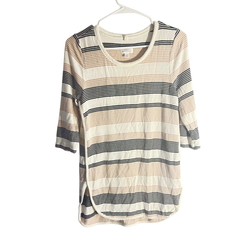 Market Square Striped Blouse – Beige/Black/White – Size Small