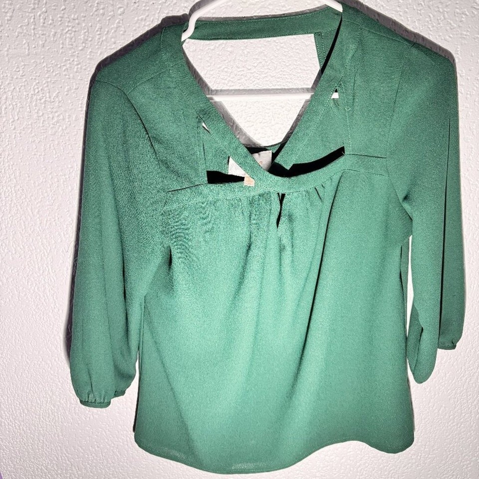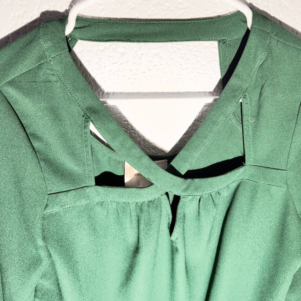 Saks Fifth Avenue Green Cutout Neck 3/4 Sleeve Blouse Size Medium
