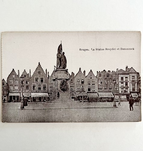 Breydel De Coninc Statue Bruges Litho Belgium Gravure 1910s Postcard PCBG12A