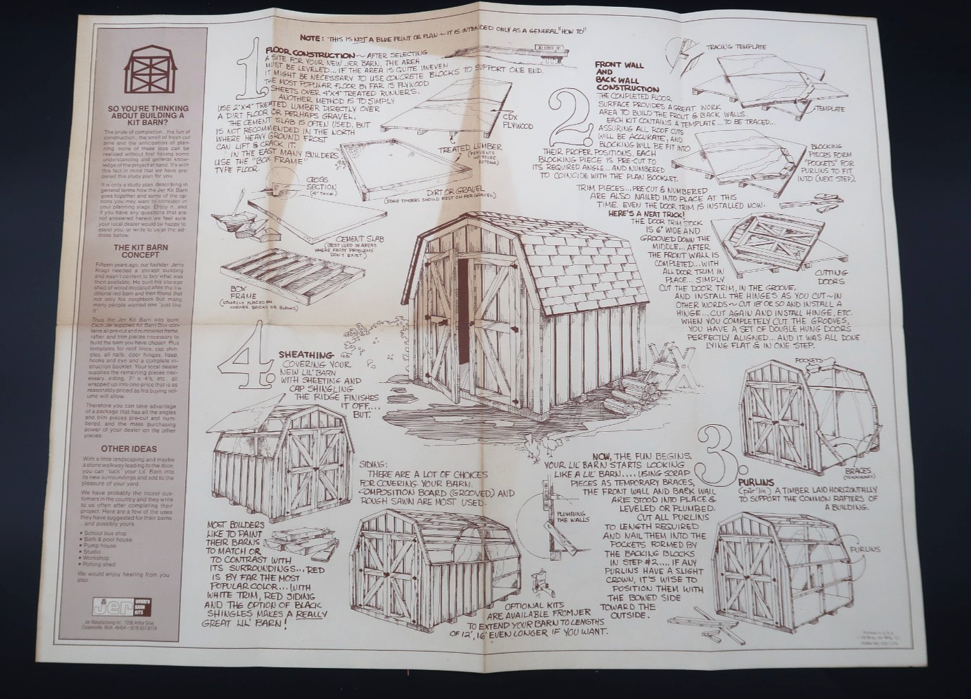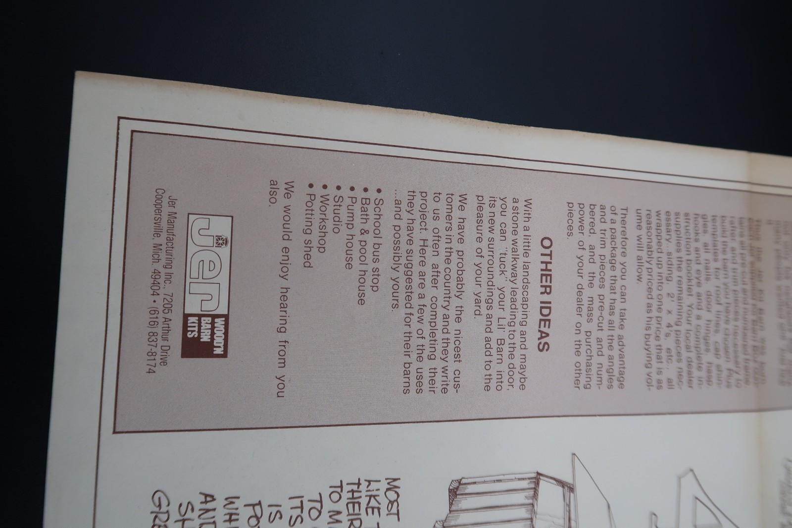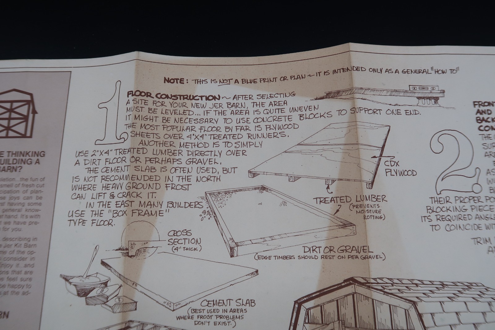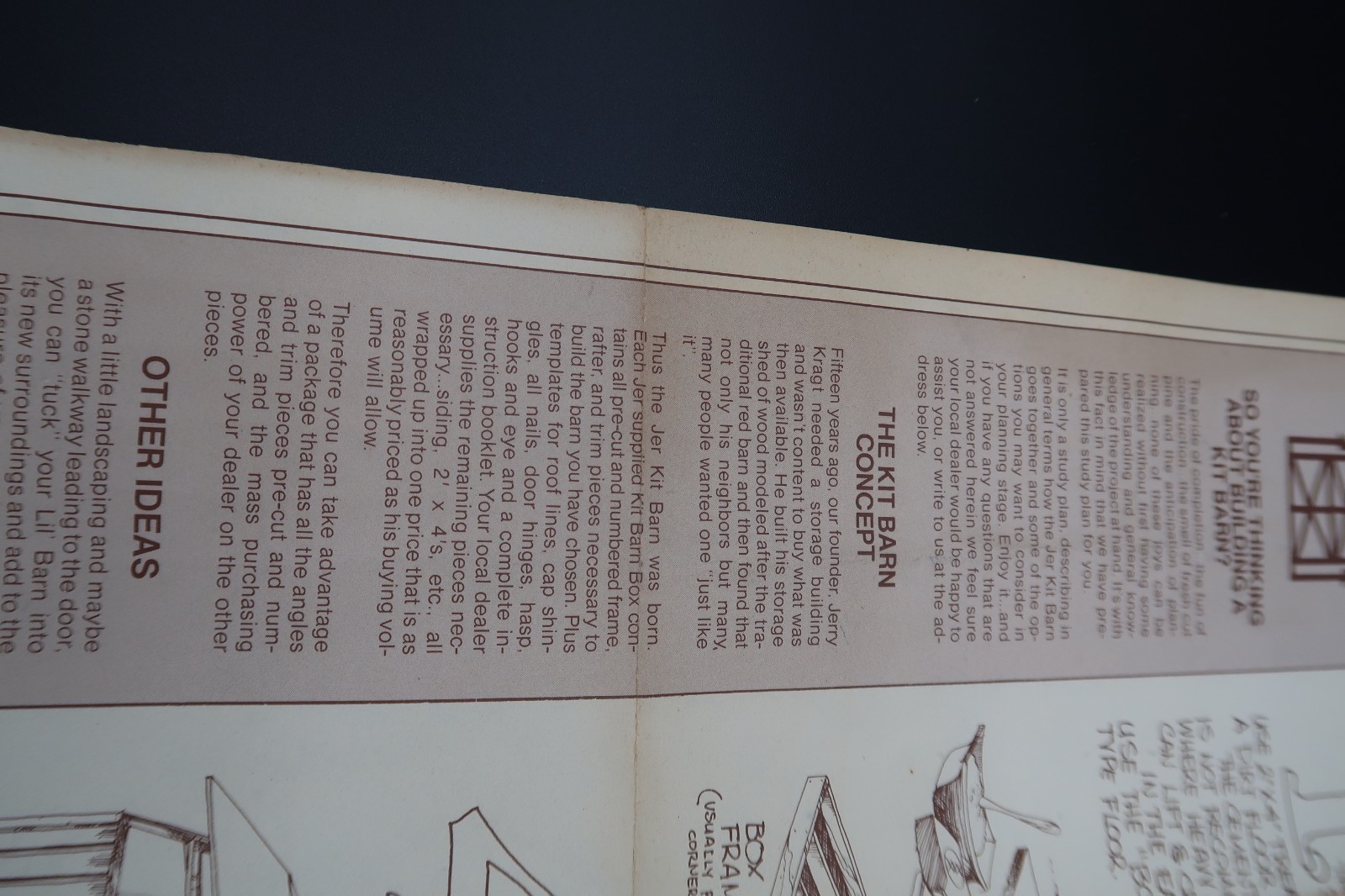 Vtg Barn Kit Build Instructional Information Ephemera 1978 Jer MFG. USA Unusual