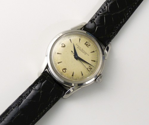 GIRARD-PERREGAUX Gyromatic Stainless Steel. Vintage Watch w/Gun Metal Blue Hands