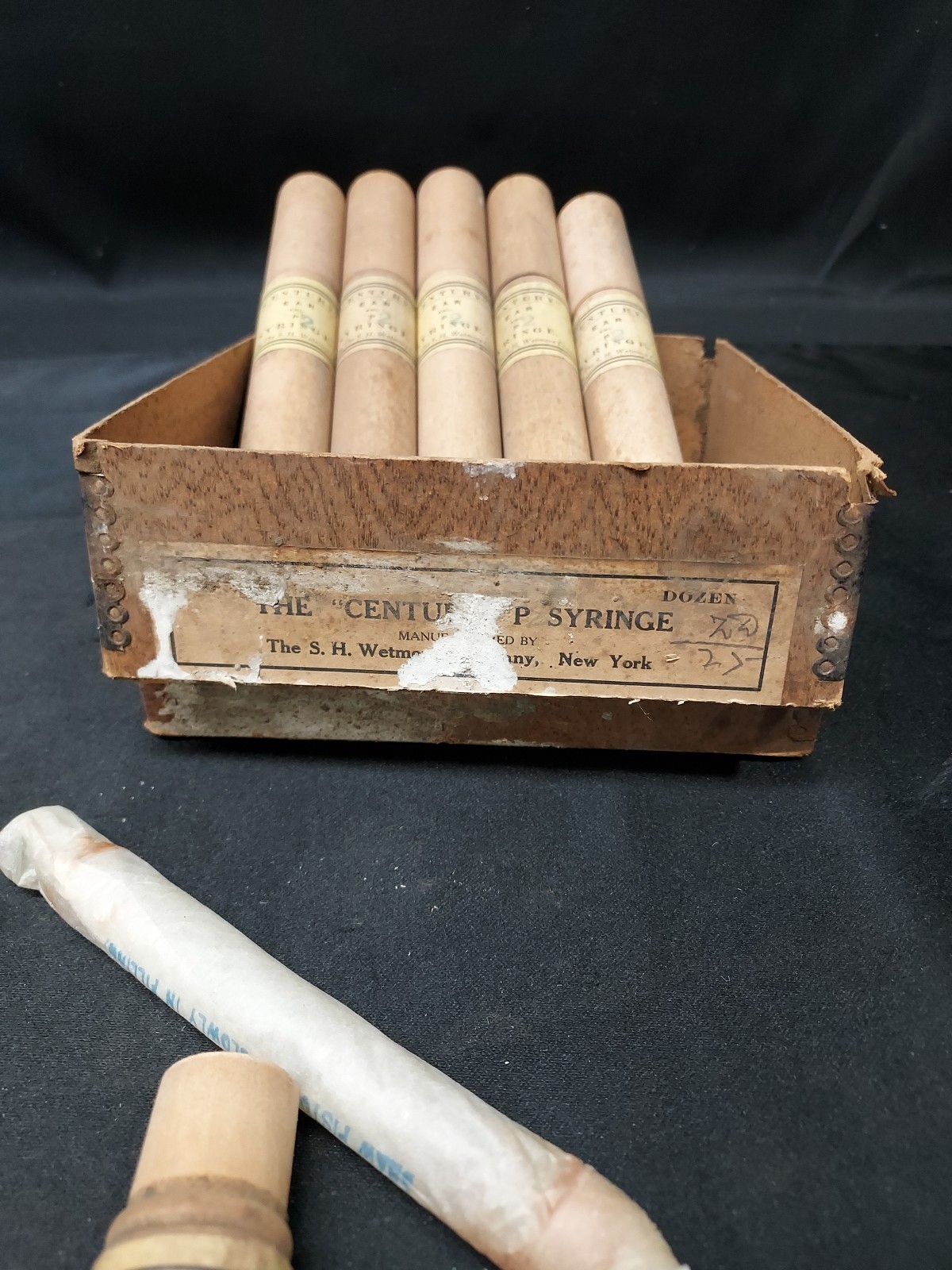 NOS 19th Century S. H. WETMORE Medical Doctor Glass Syringe Wood Case Lot Of 6. Shipped with USPS Ground Advantage.