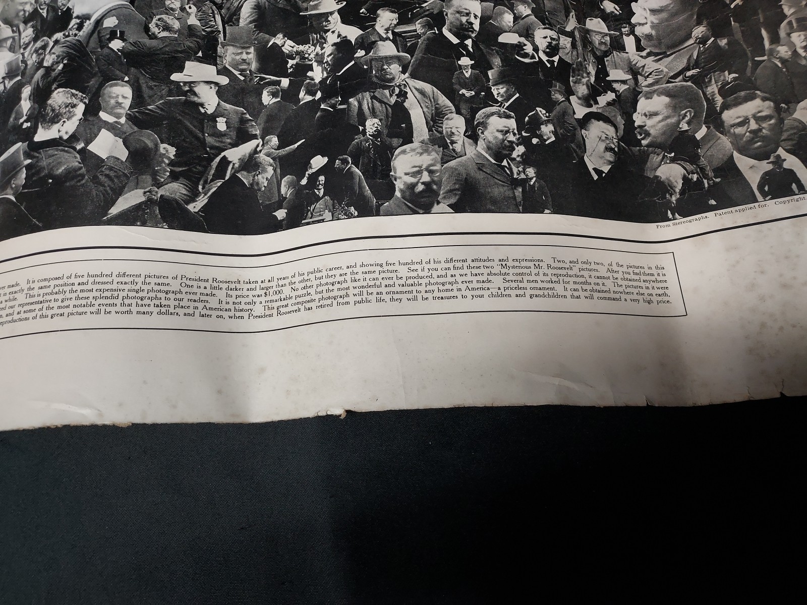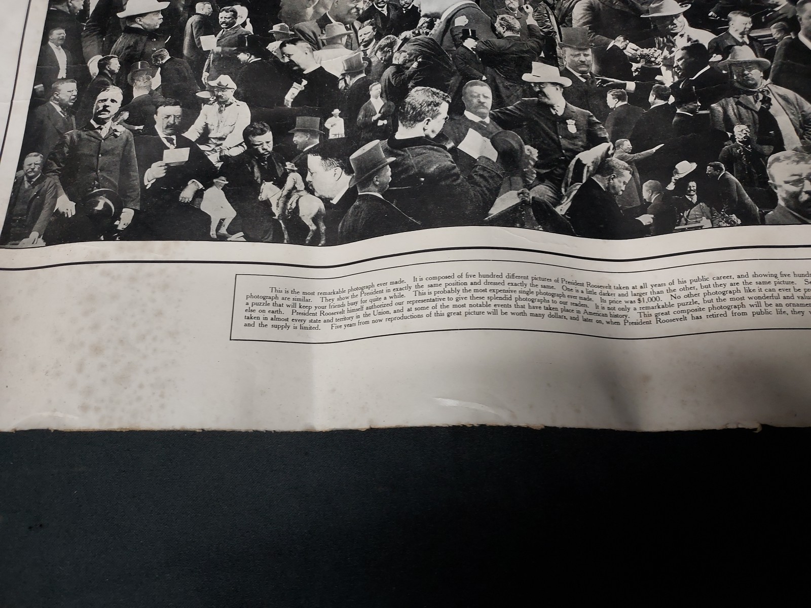 Rare 1908 PRESIDENT THEODORE ROOSEVELT Composite Photograph 500 Faces Poster. Condition is Used. Shipped with USPS Ground Advantage.