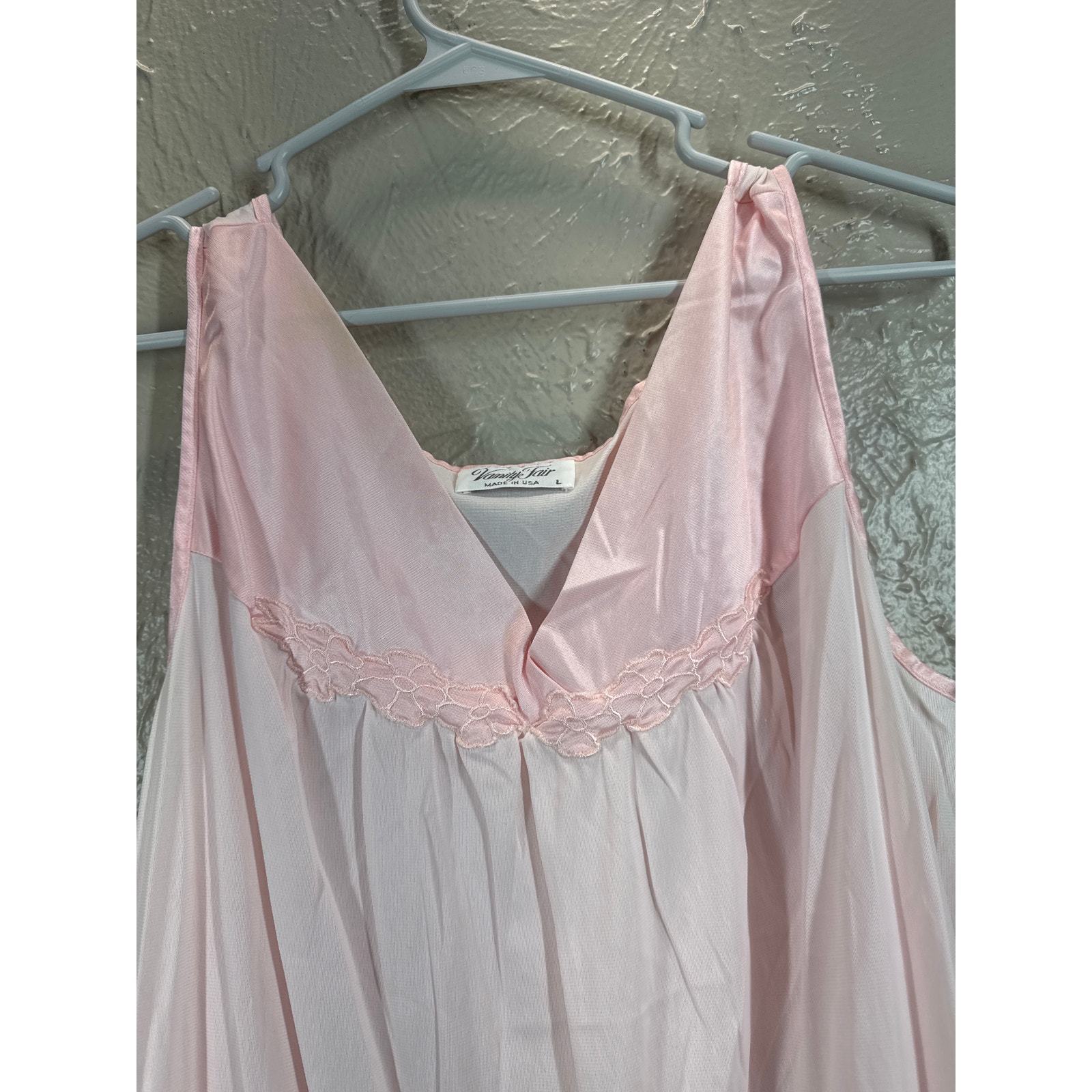 Vintage Vanity Fair pink Night Gown Slip Silky Chemise USA Made Women's Size L