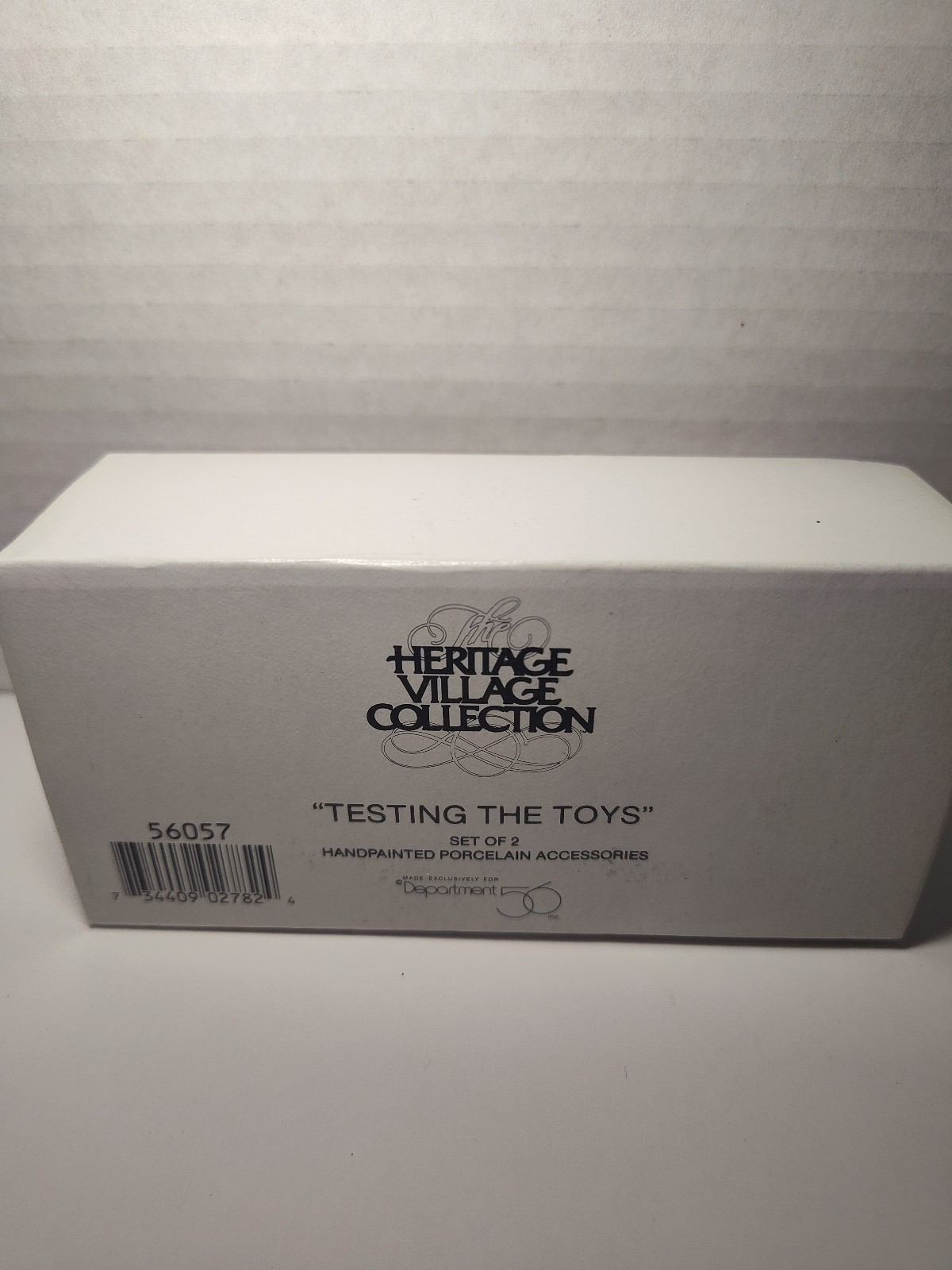 NIB Dept 56 "Testing The Toys" Set of 2 Pieces Heritage Village Collection 56057