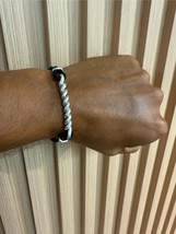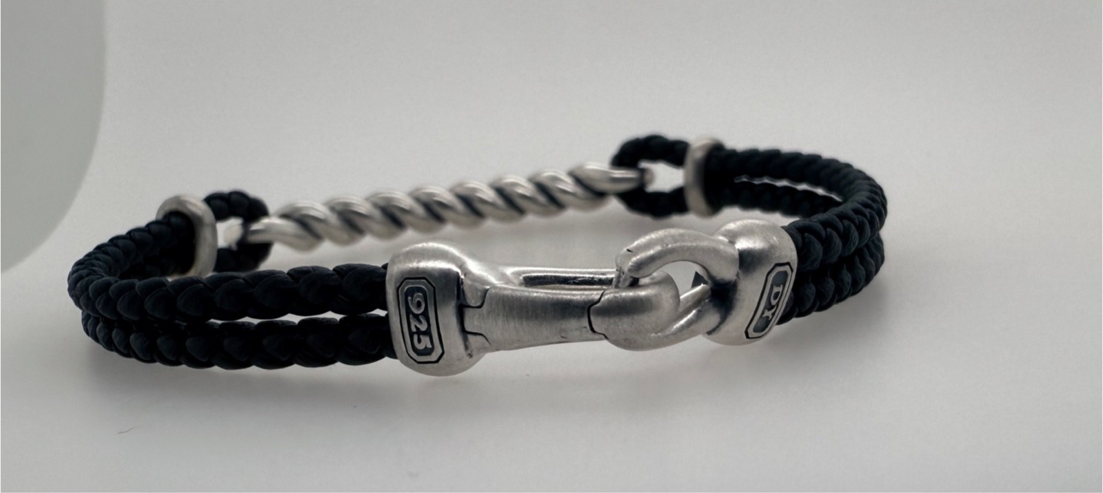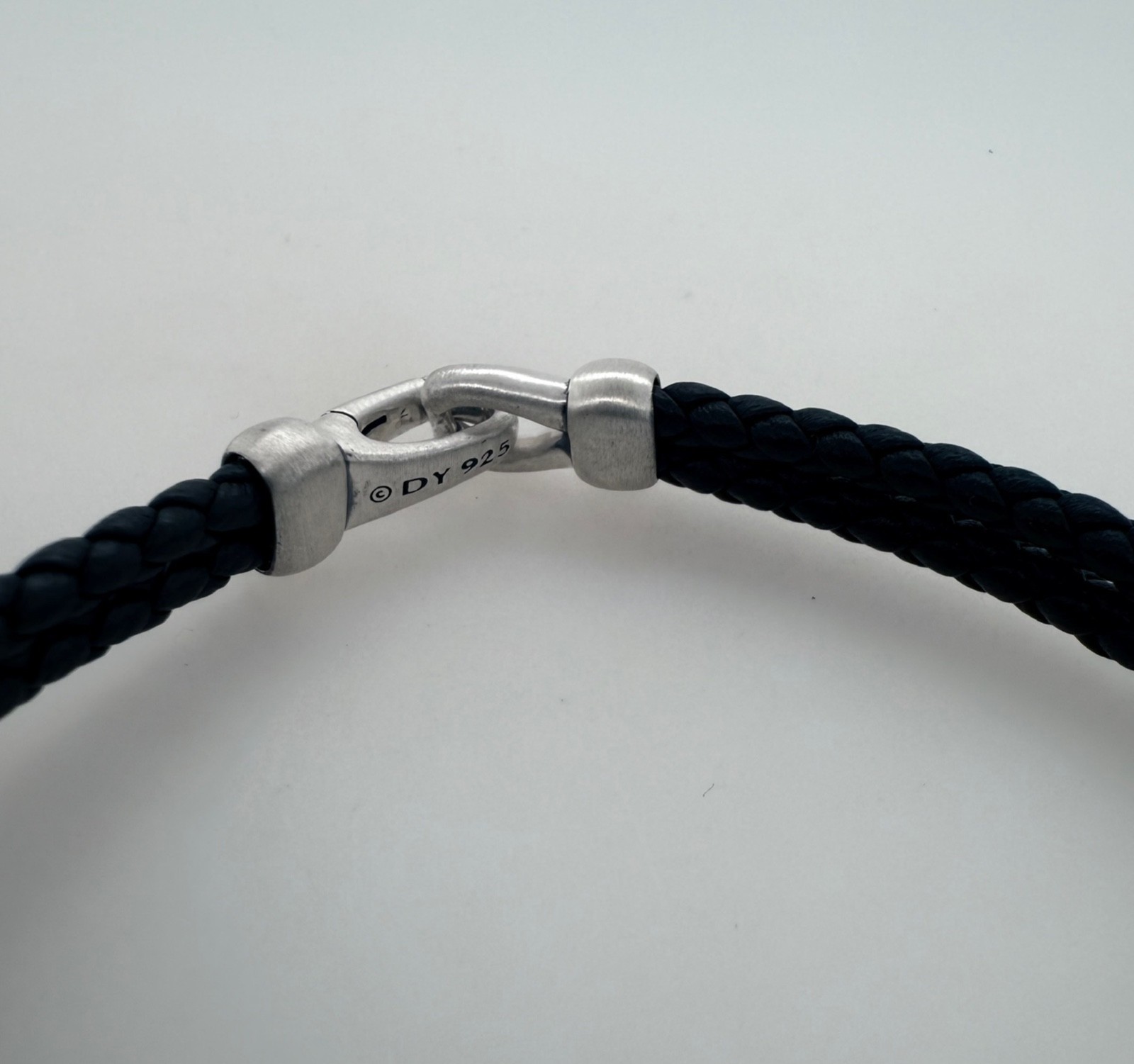 David Yurman Sterling Silver .925 Cable Id Leather Men's Bracelet Size Small