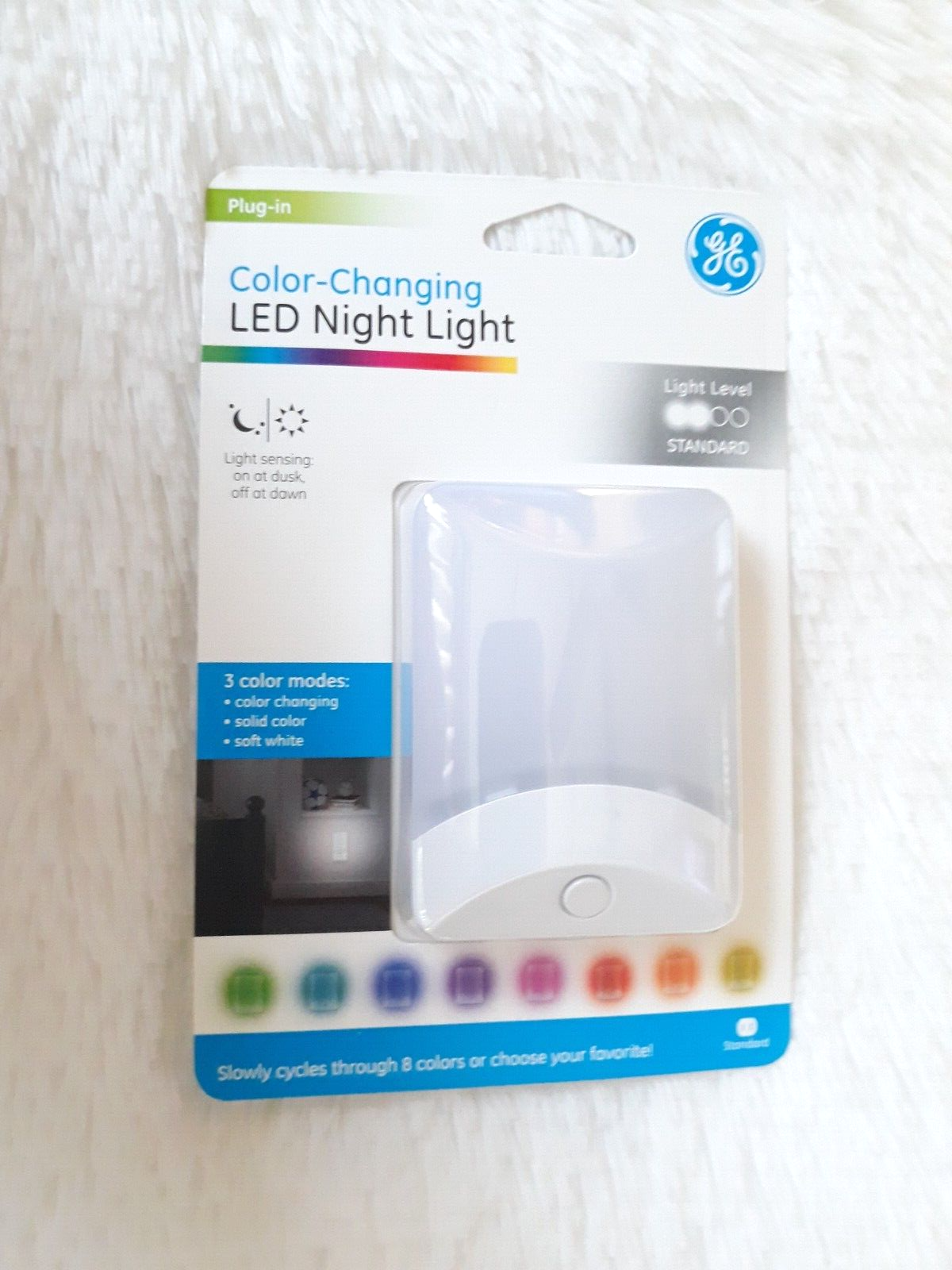 GE Color-Changing LED Night Light 3 Color Changing Modes Light Sensing Dusk/Dawn