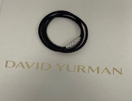 David Yurman .925 Sterling Silver Chevron Triple Wrap Black Leather Bracelet S