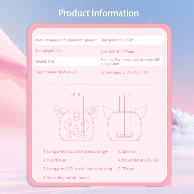 Cute Kuromi Wireless Bluetooth Portable Speaker Mini Audio Dock TF Card Gift Box
