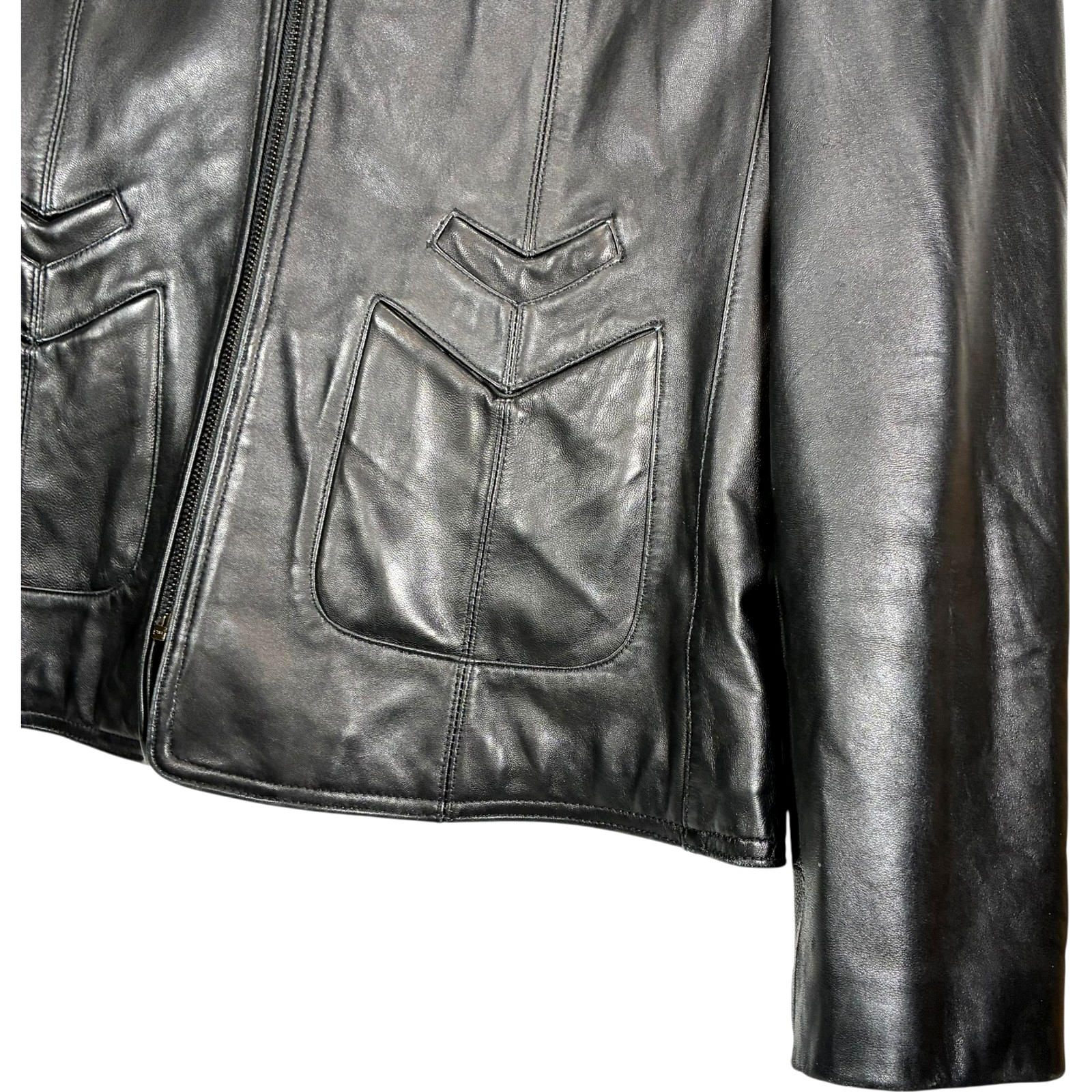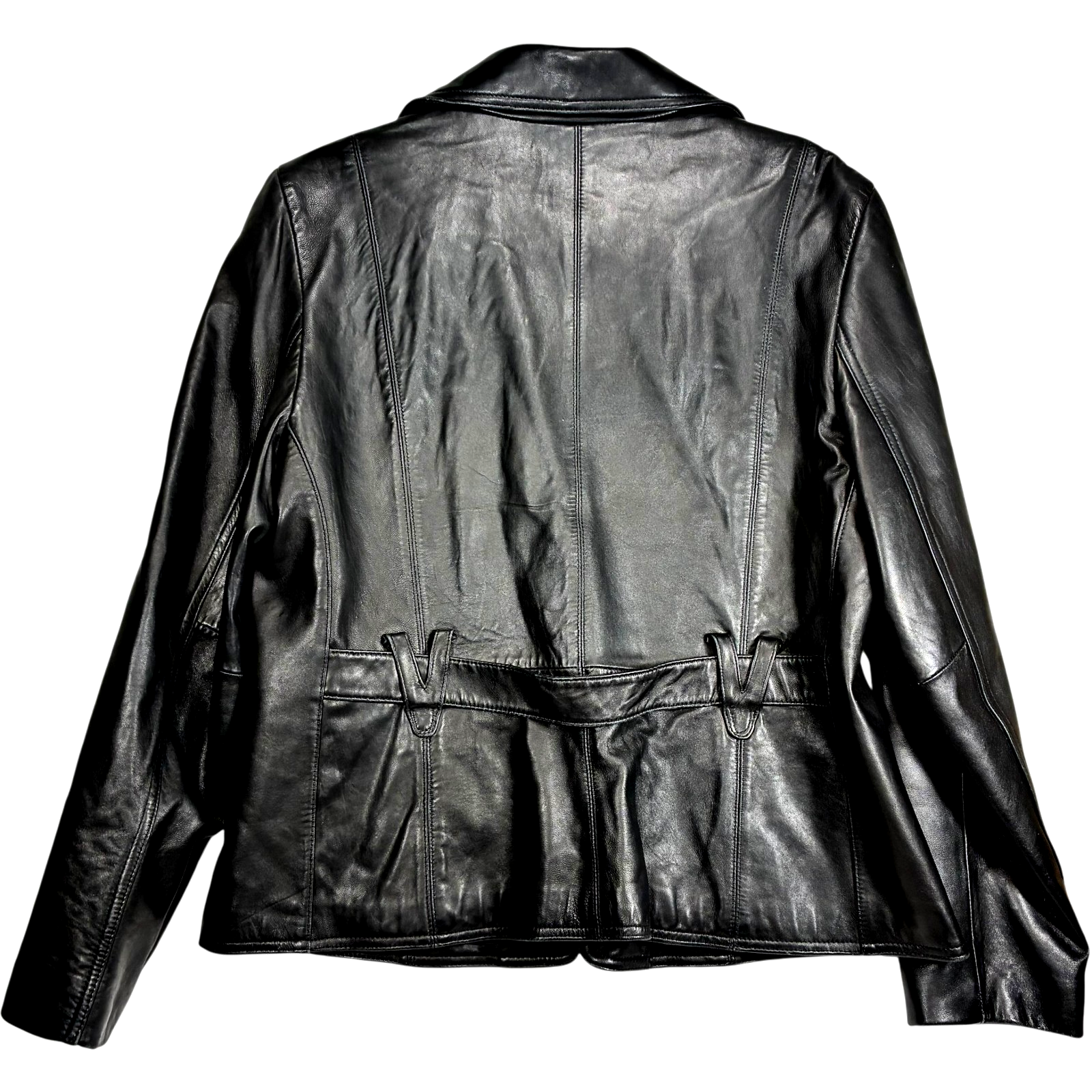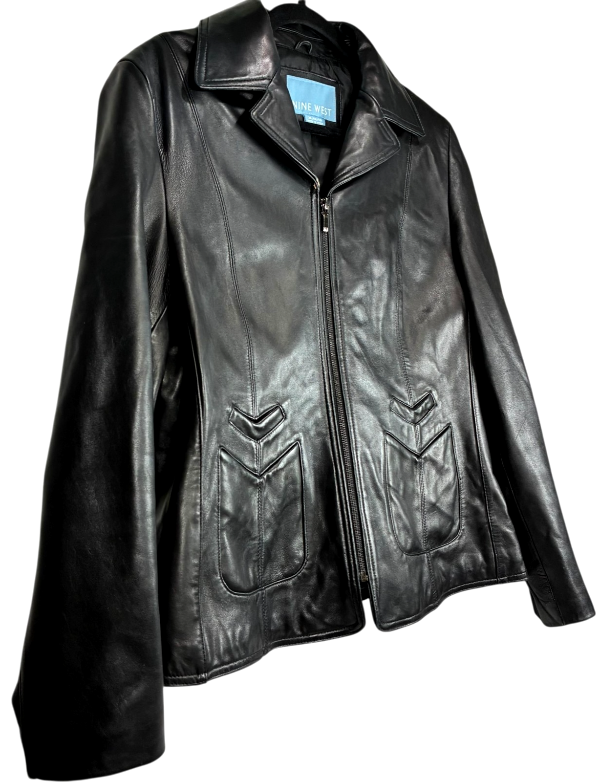 Nine West women's Classic Ride Full-Zip Black Soft Leather Motorcycle Jacket size XL