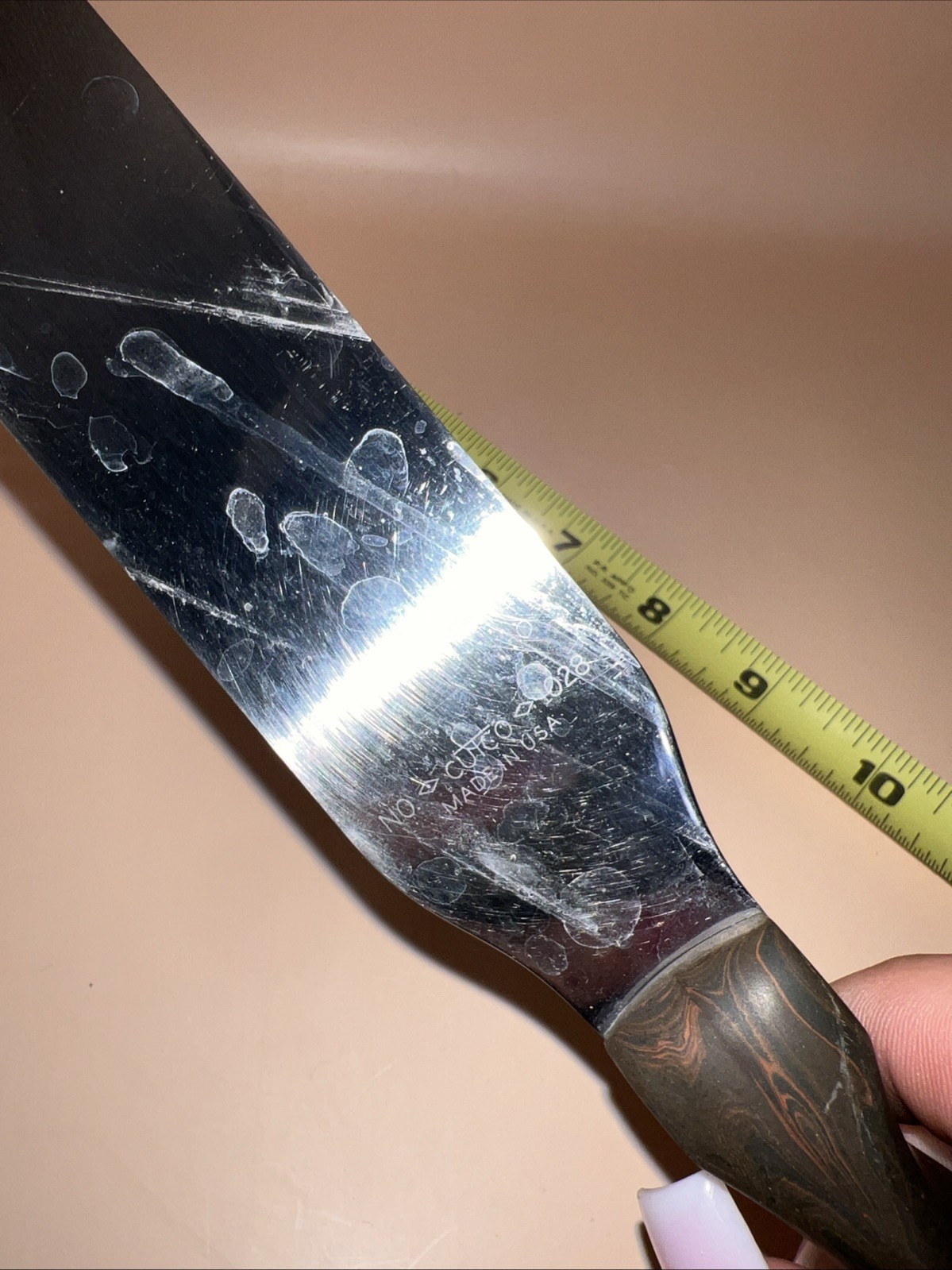 Vintage Cutco Serrated Spatula Spreader Knife Brown Swirl Marble Handle USA 1028