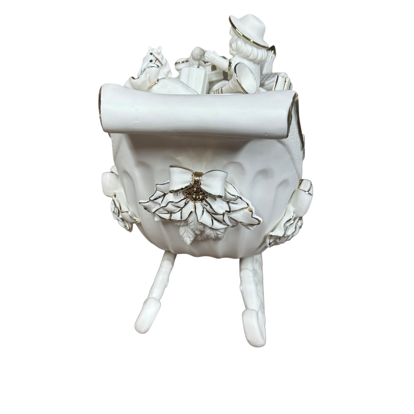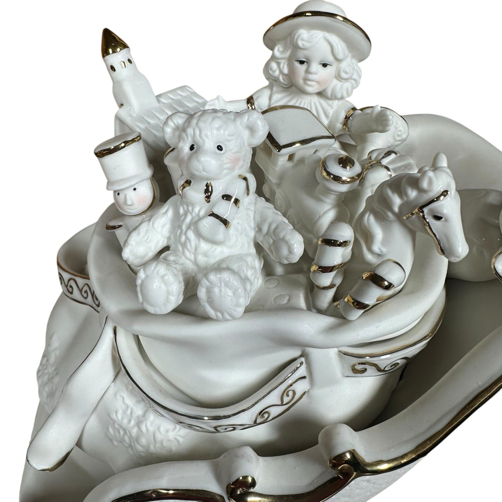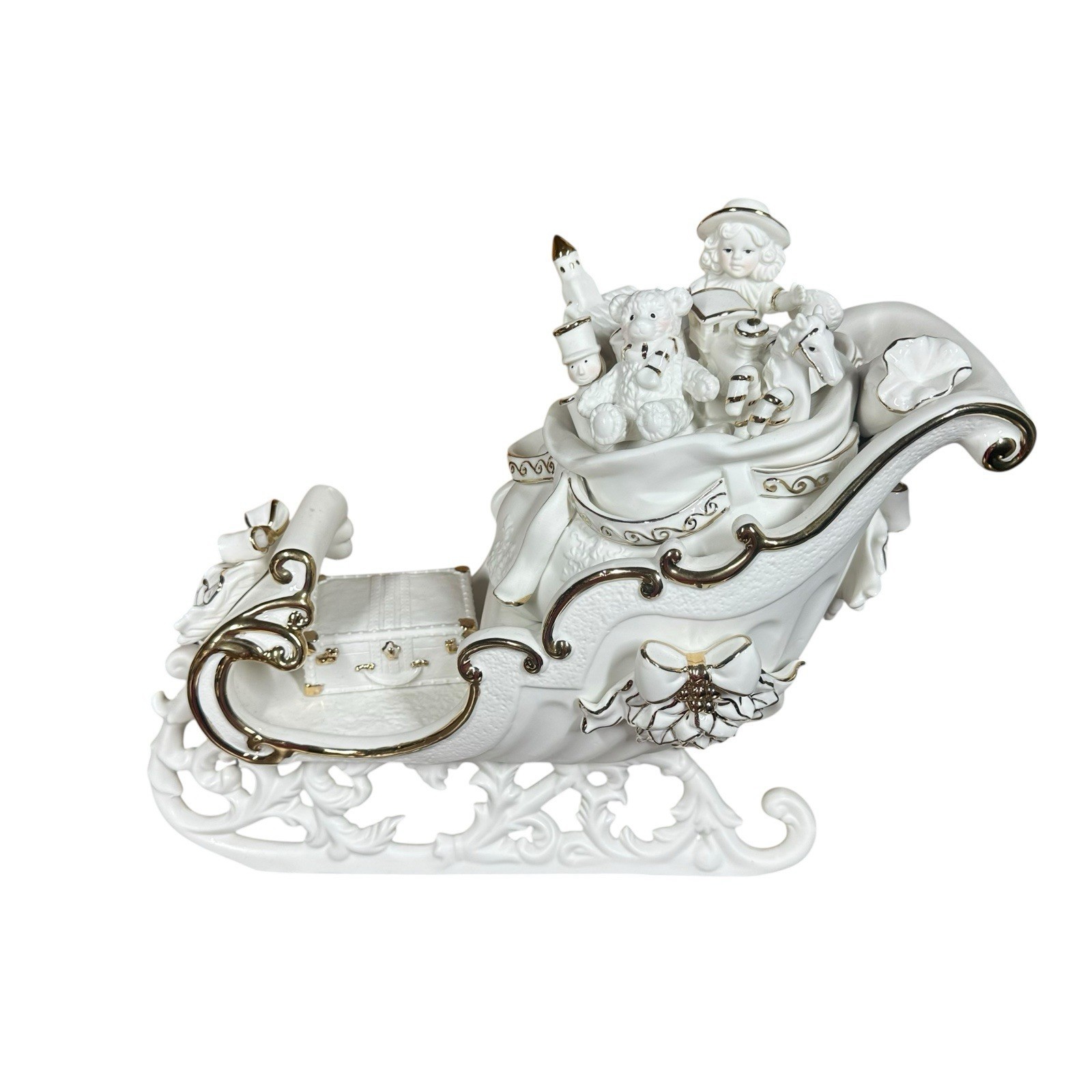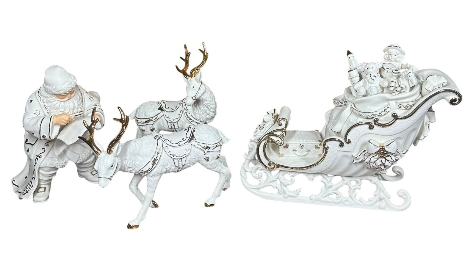 Grandeur Noel Porcelain with Gold Trim Santa and Sleigh Set w/ Reindeer 2001 Collectors Edition in Original Box