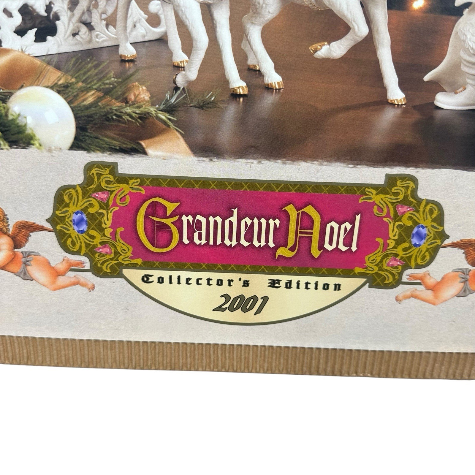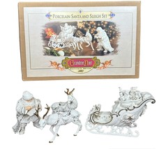 Grandeur Noel Porcelain Santa and Sleigh Set w/ Reindeer 2001 Collectors Edition