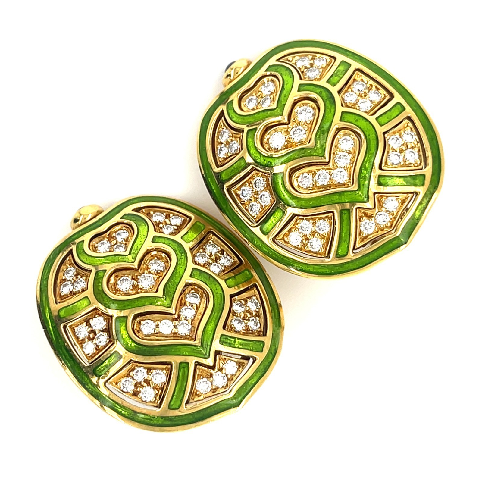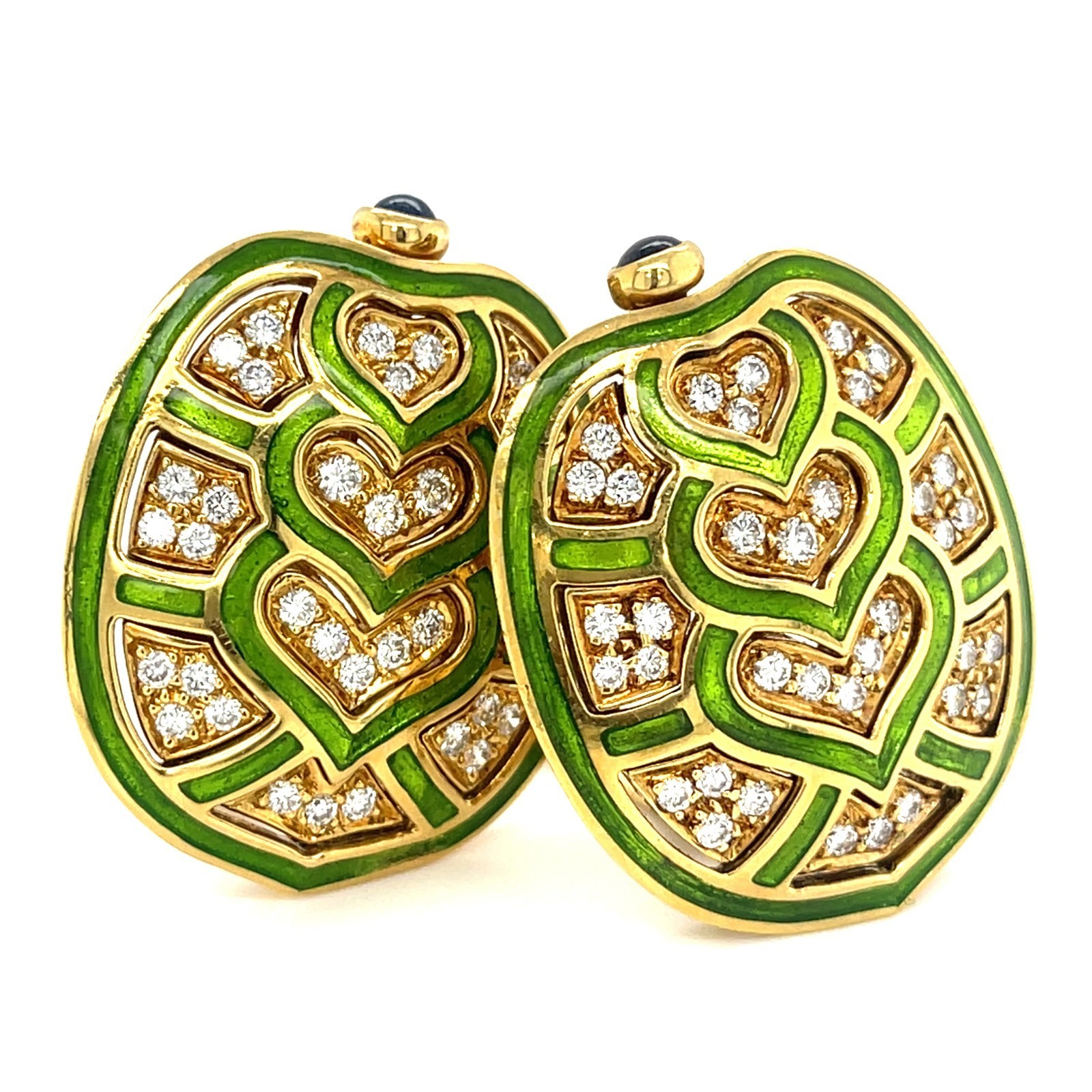 Beautiful 18k Gold Judith Leiber Enamel 1.35ct Diamond, 0.30ct Sapphire Earrings 37.4g