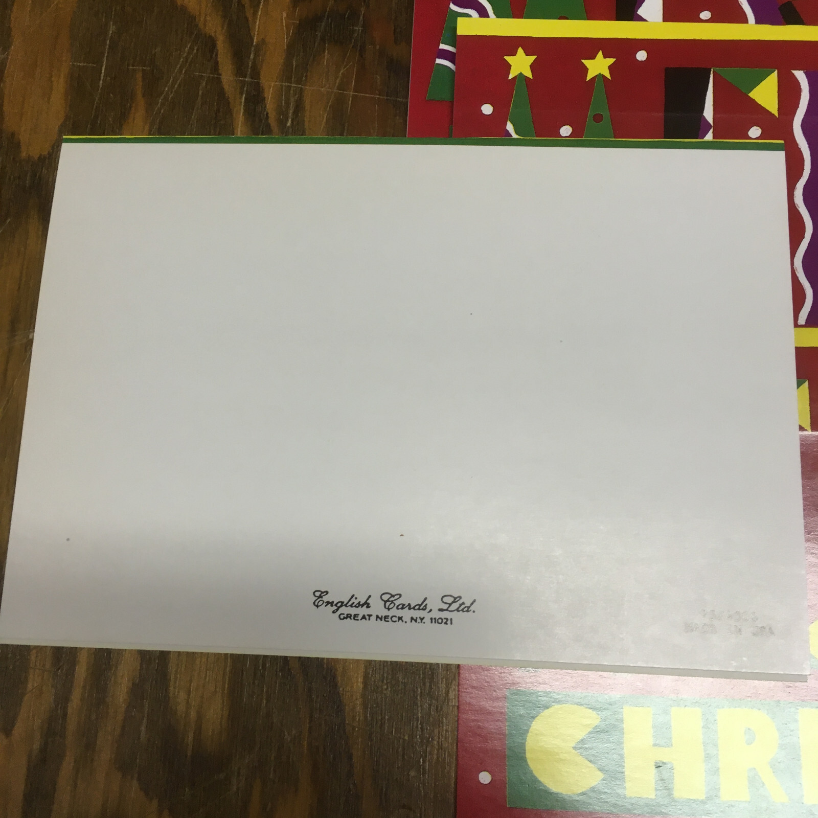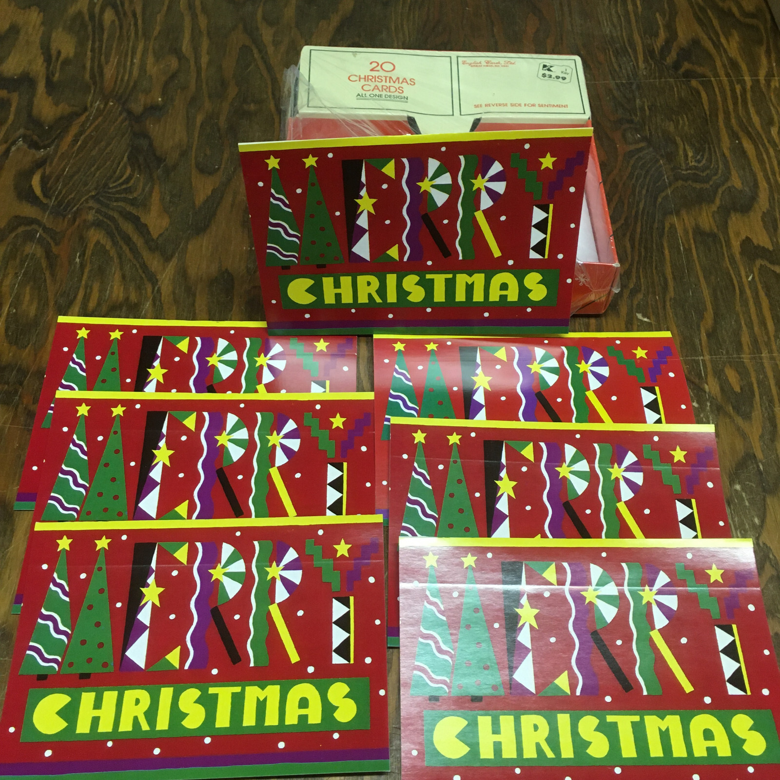 Bright color graphics vintage Merry Christmas cards from Kmart movie photo prop