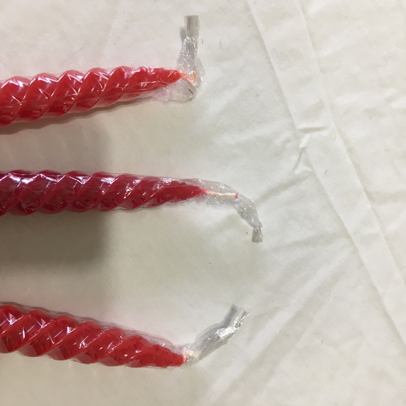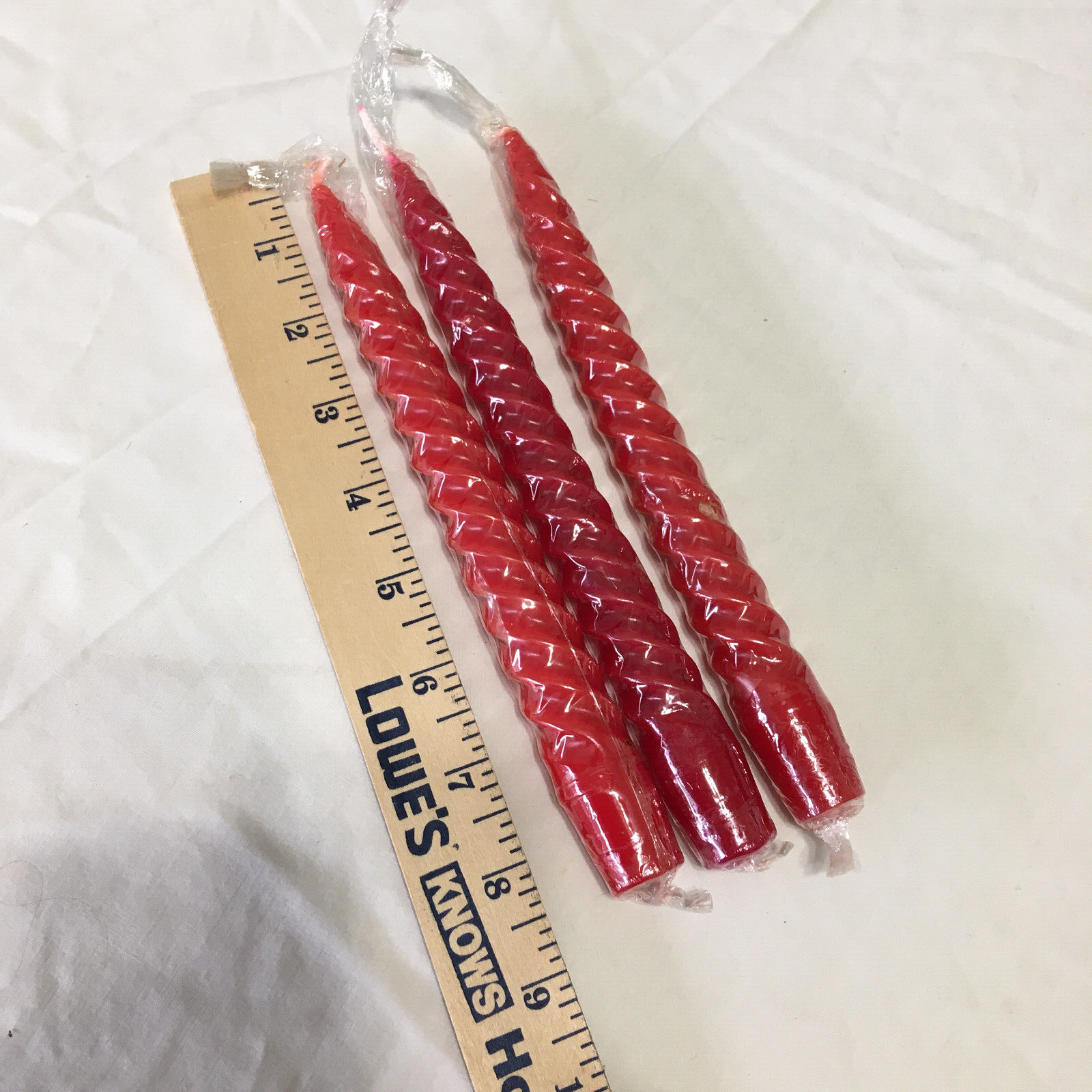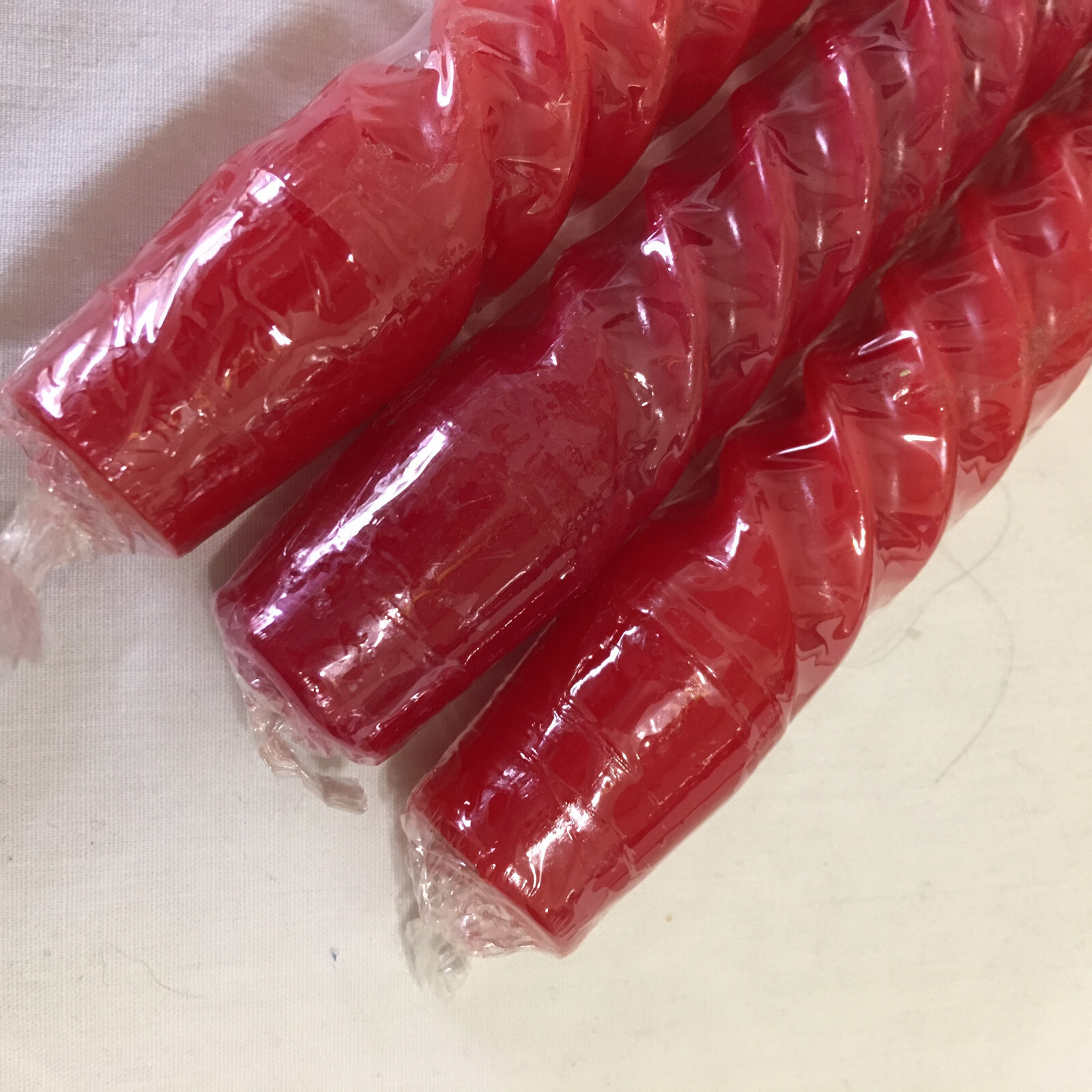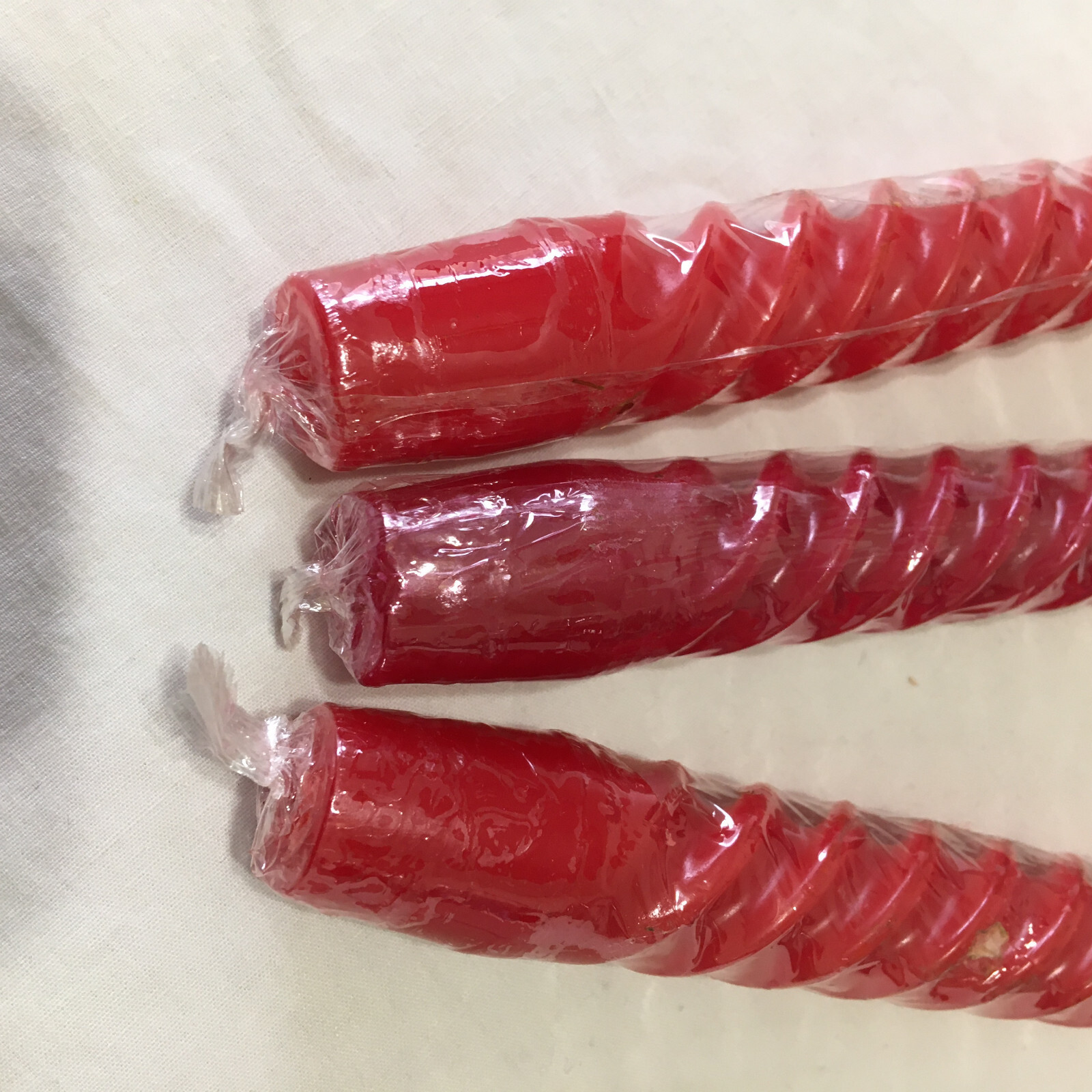 Vintage swirl spiral red taper candles MCM holiday decor in original plastic