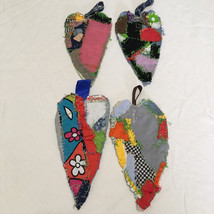 Hand crafted upcycle scrap patchwork fabric primitive country heart ornaments