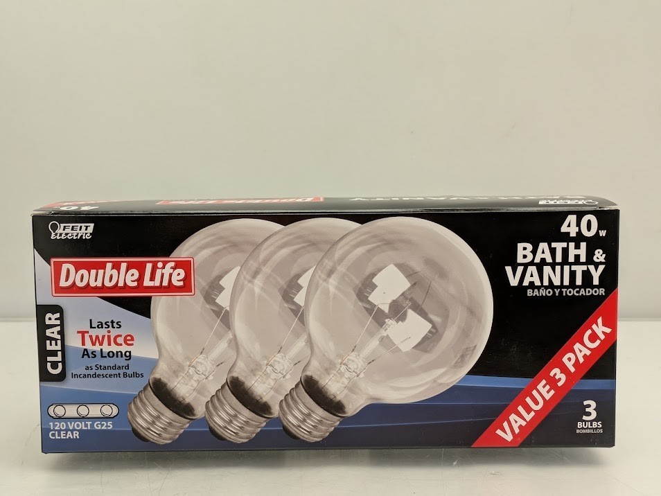 Pack of 3 Feit Electric 40-Watt G25 120v Light 3 Bulbs/Pack Bath and Vanity