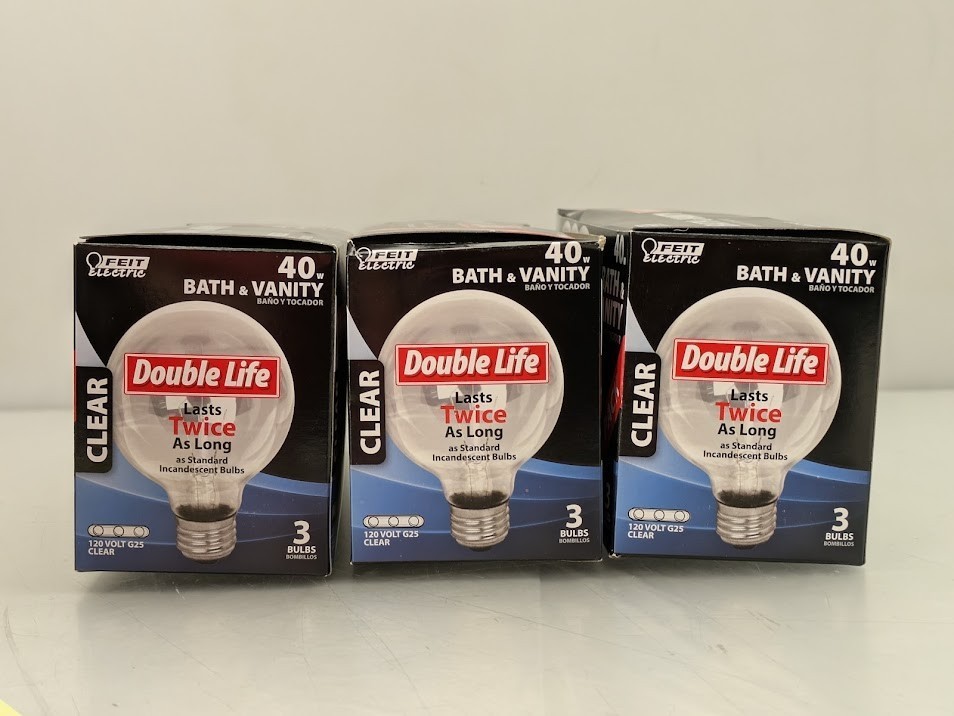 Pack of 3 Feit Electric 40-Watt G25 120v Light Bath and Vanity 3 Bulbs/Pack (9)