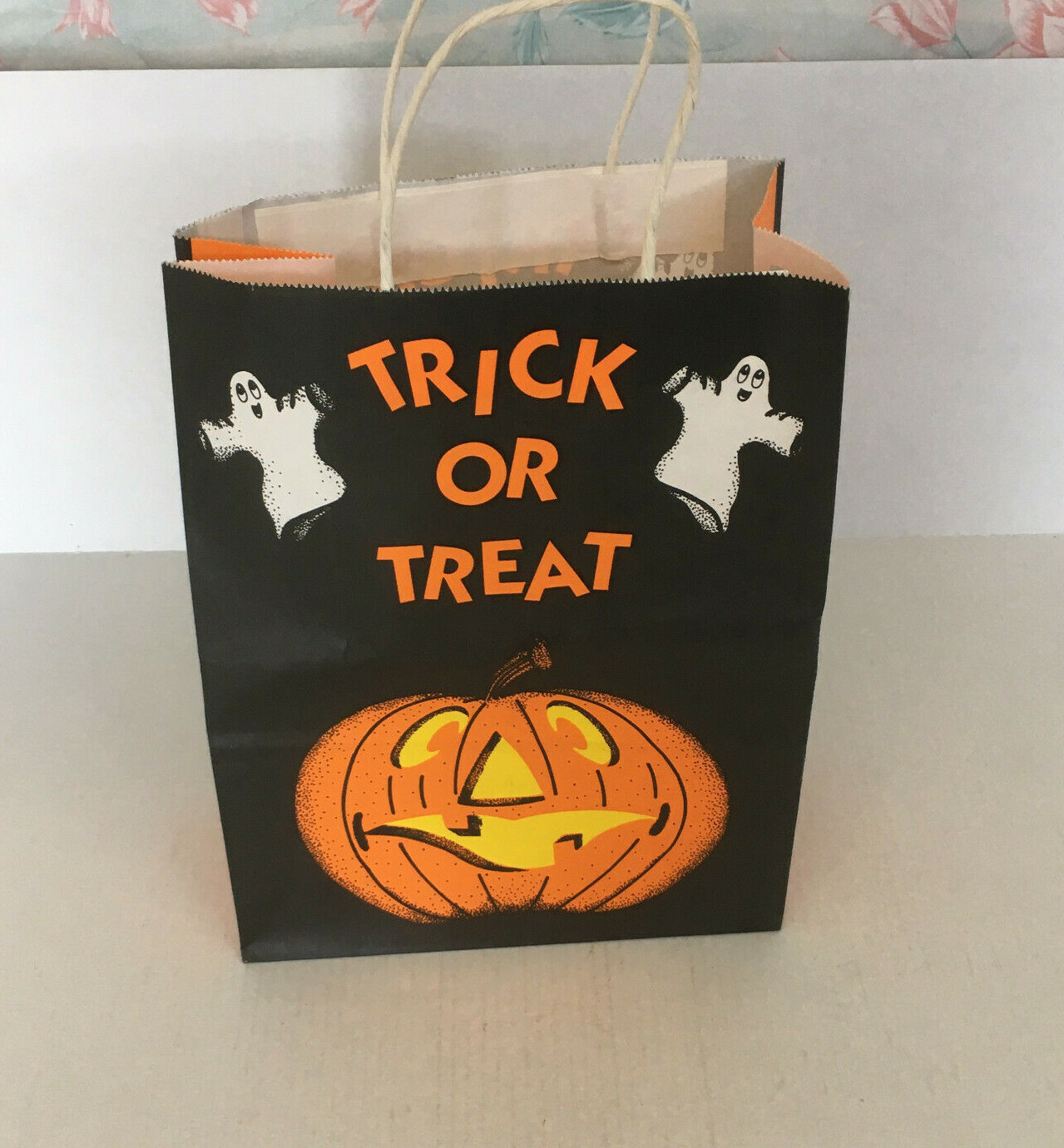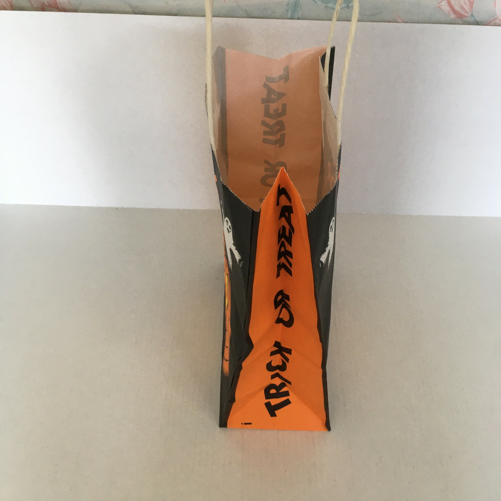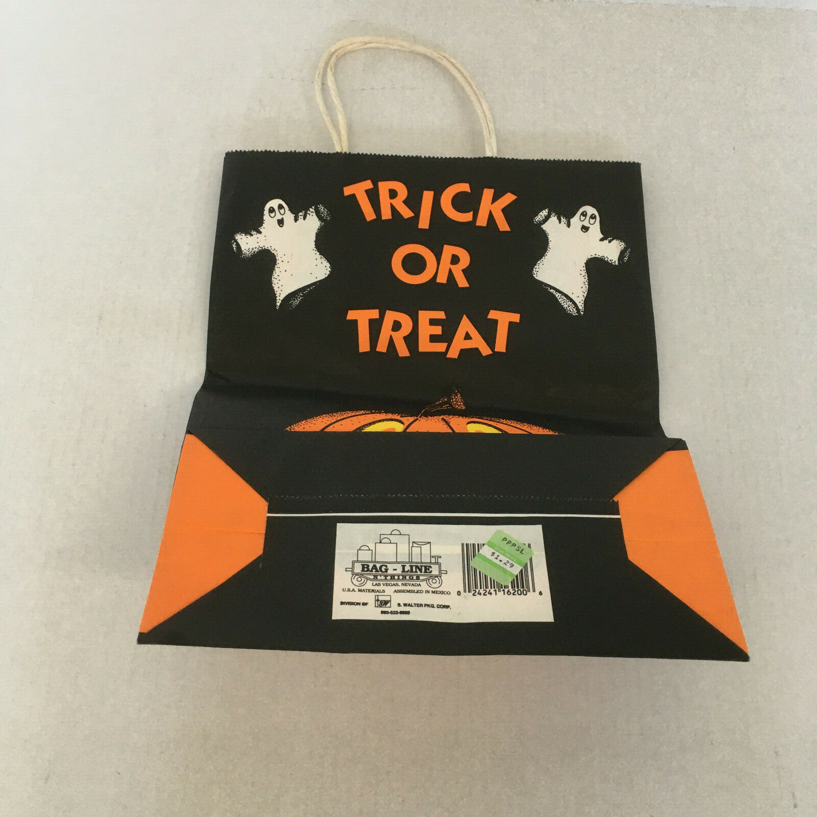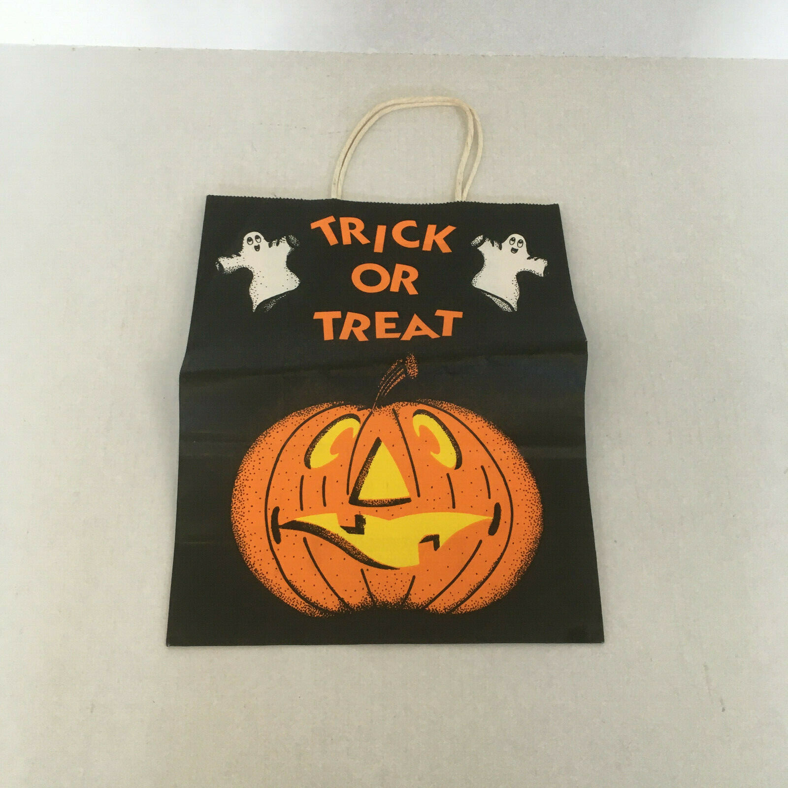 Vintage paper trick or treat Halloween bag pumpkin ghost graphics movie prop