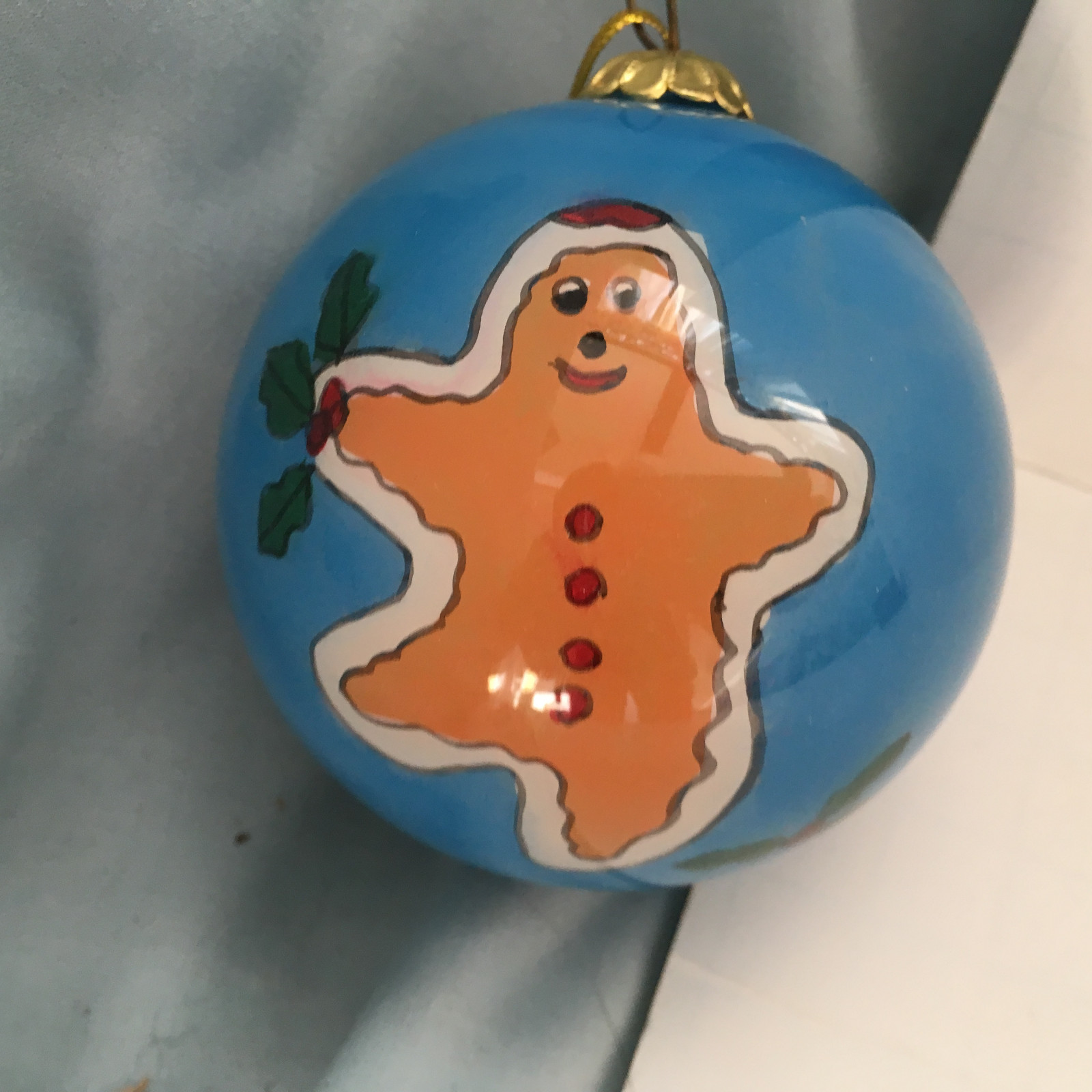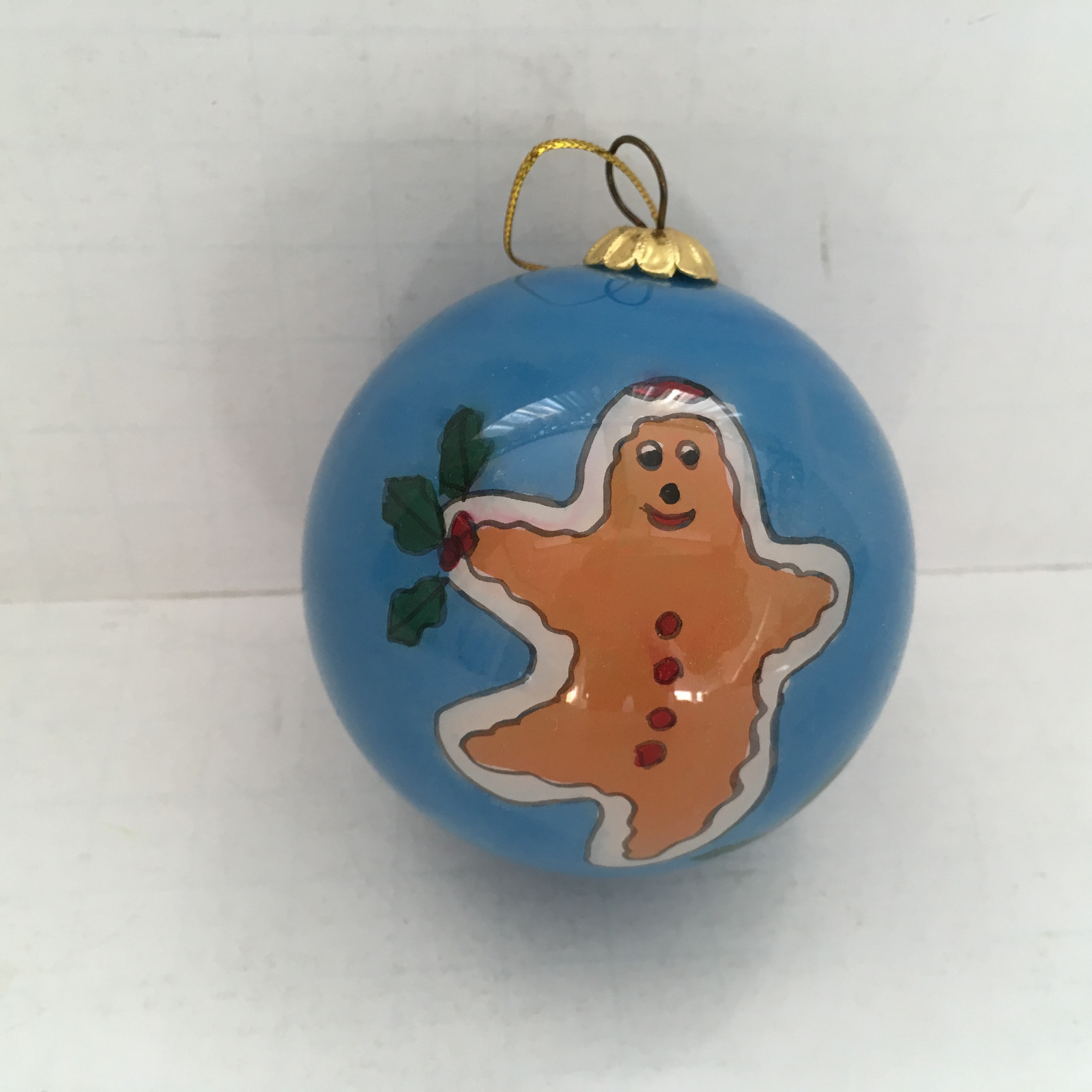 Painted gingerbread man glass Christmas tree ornament holiday decor