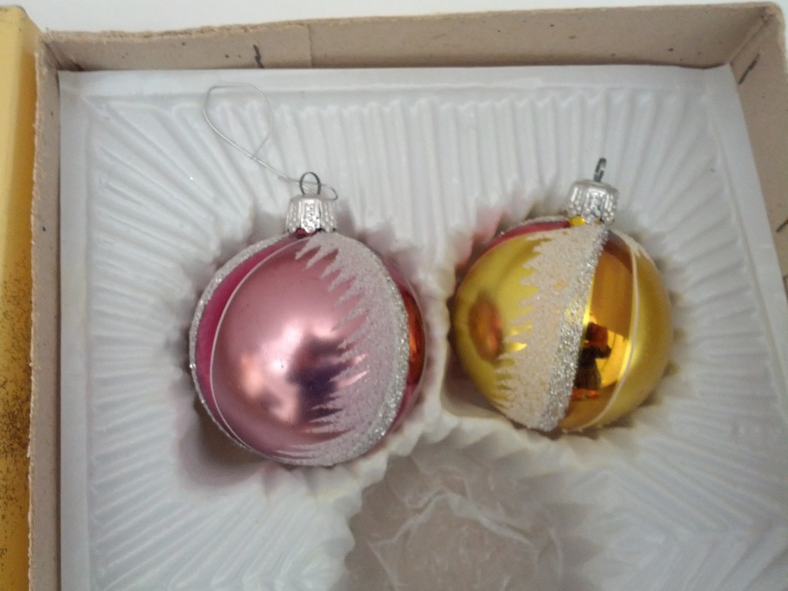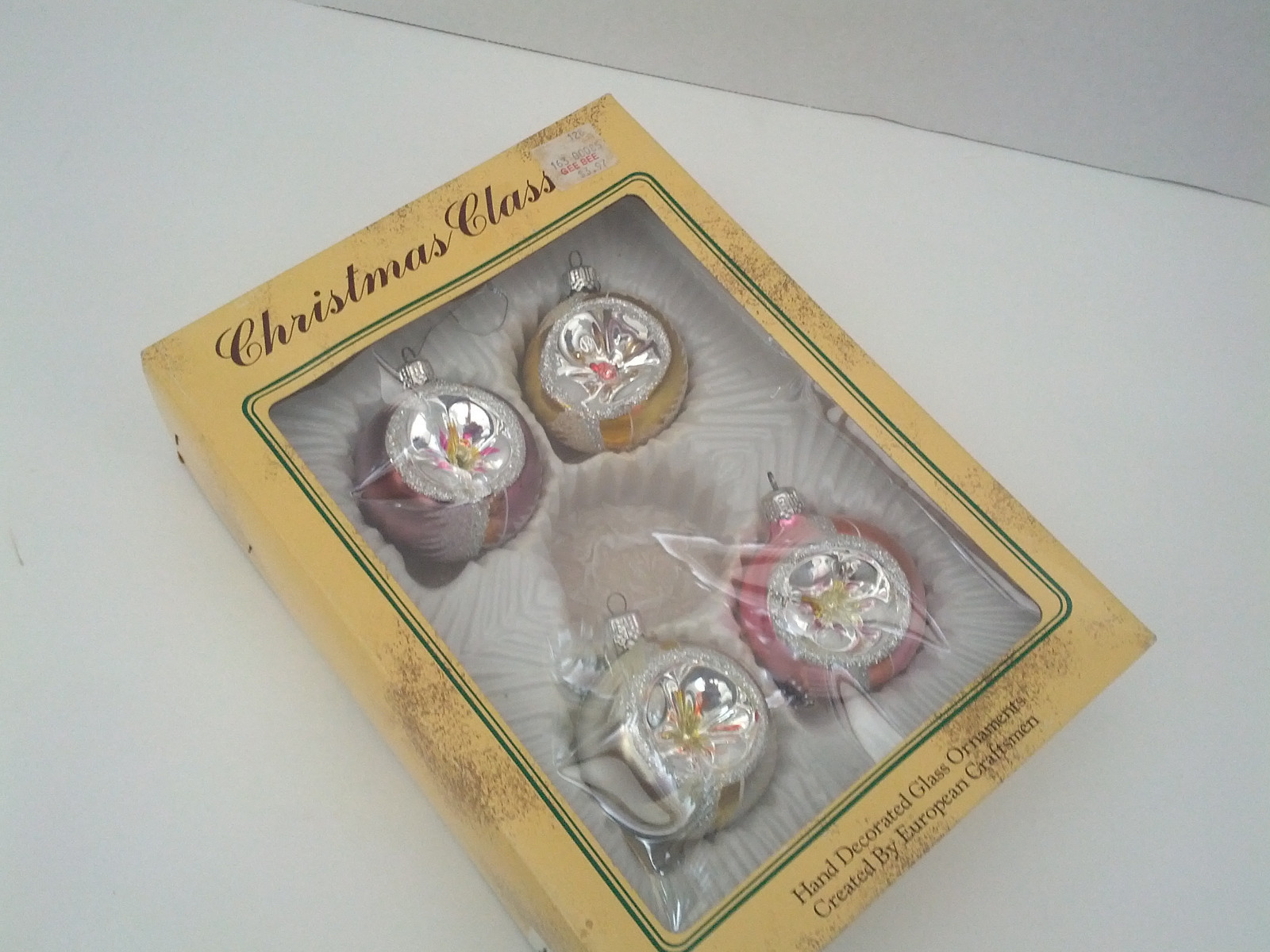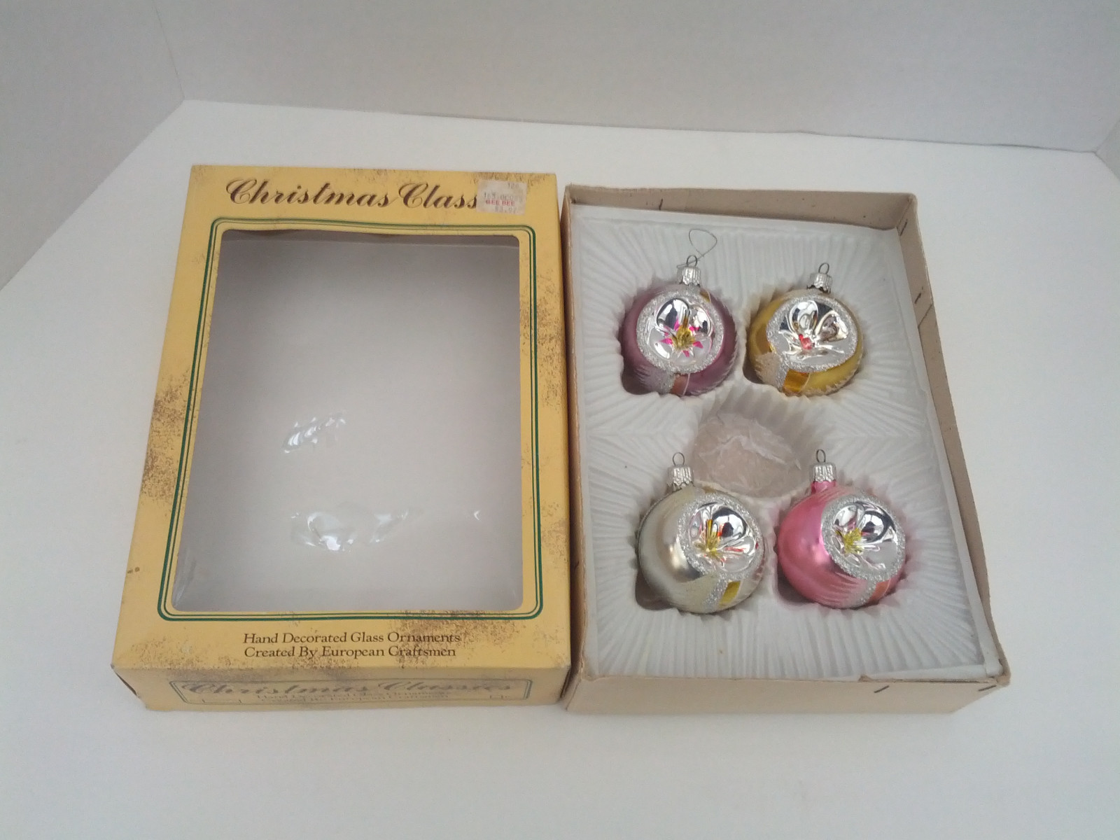 Vintage round indent glitter hand decorated holiday Christmas tree ornaments
