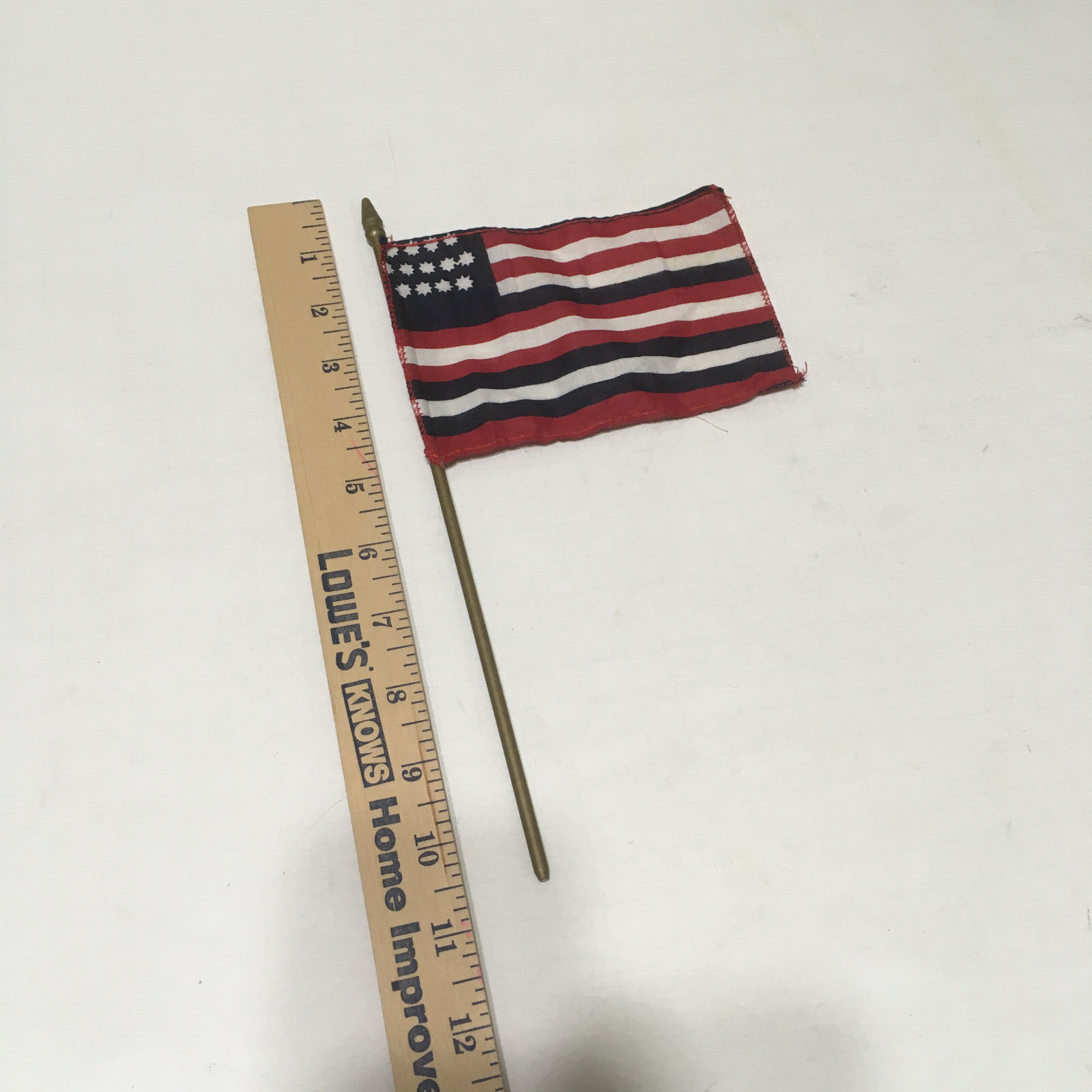 Mini thirteen stars red white blue strips vintage American flag plastic pole