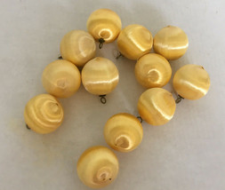 Vintage lot of 12 satin string thread round Christmas tree ornaments yellow
