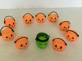 Vintage plastic little pumpkin jack o lantern frankenstein candy holder lot