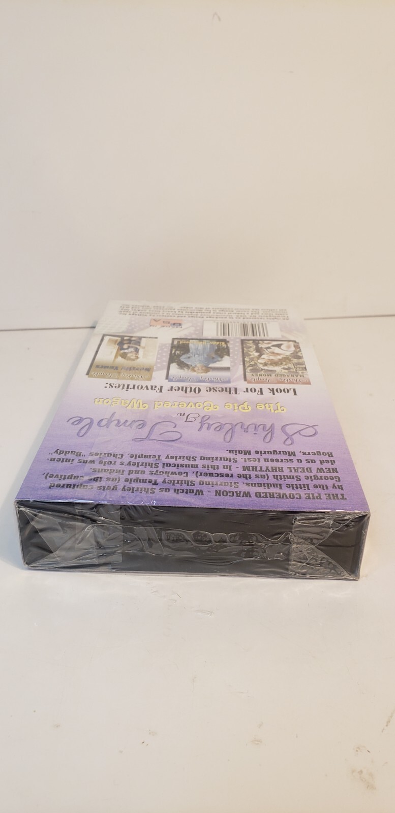 The product is a VHS tape titled "Shirley Temple The Pie Covered Wagon," featuring actress Shirley Temple in a musical and Broadway genre film. The movie is rated NR (Not Rated) and is sealed in new condition. This classic Shirley Temple film is likely to appeal to fans of musicals and vintage cinema, offering an opportunity to enjoy the beloved actress's talent in an entertaining story.