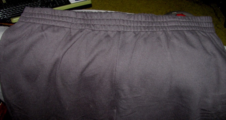 There is a brand name sewn to the center back: "Terra Jay". No frayed stitching or bad places. No drawstring in the waist, only elastic. They have 2 side pockets.