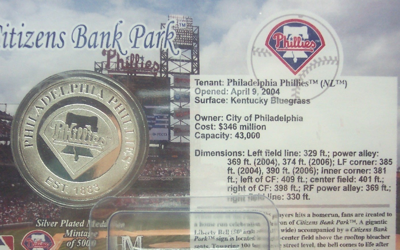 PHILADELPHIA PHILLIES Highland Mint CITIZENS BANK PARK Silver Plated COIN NEW